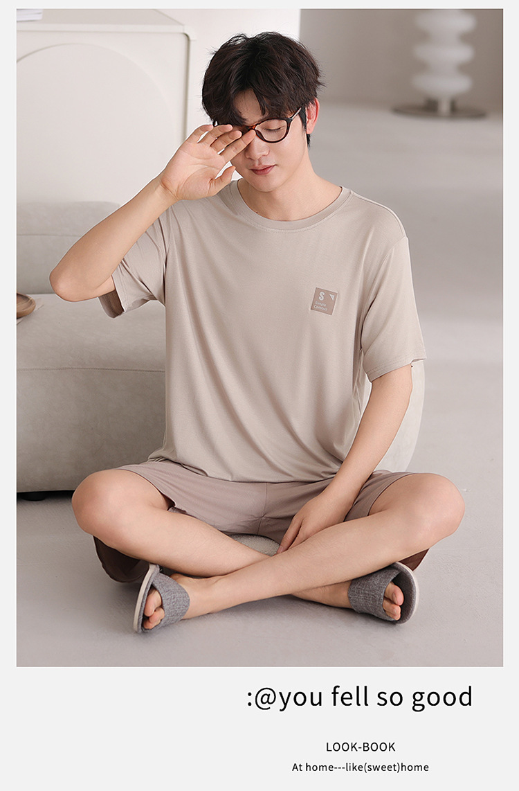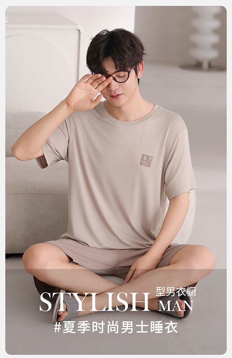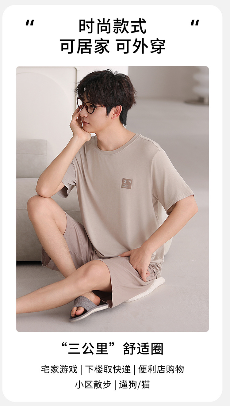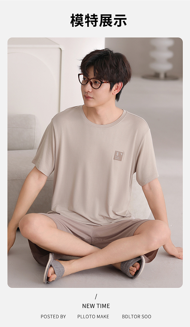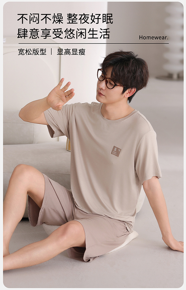 男性用パジャマ夏モーダル 2025 新しい半袖ショーツ薄いスタイルティーンエイジャーはプラスサイズのホーム服を着ることができます