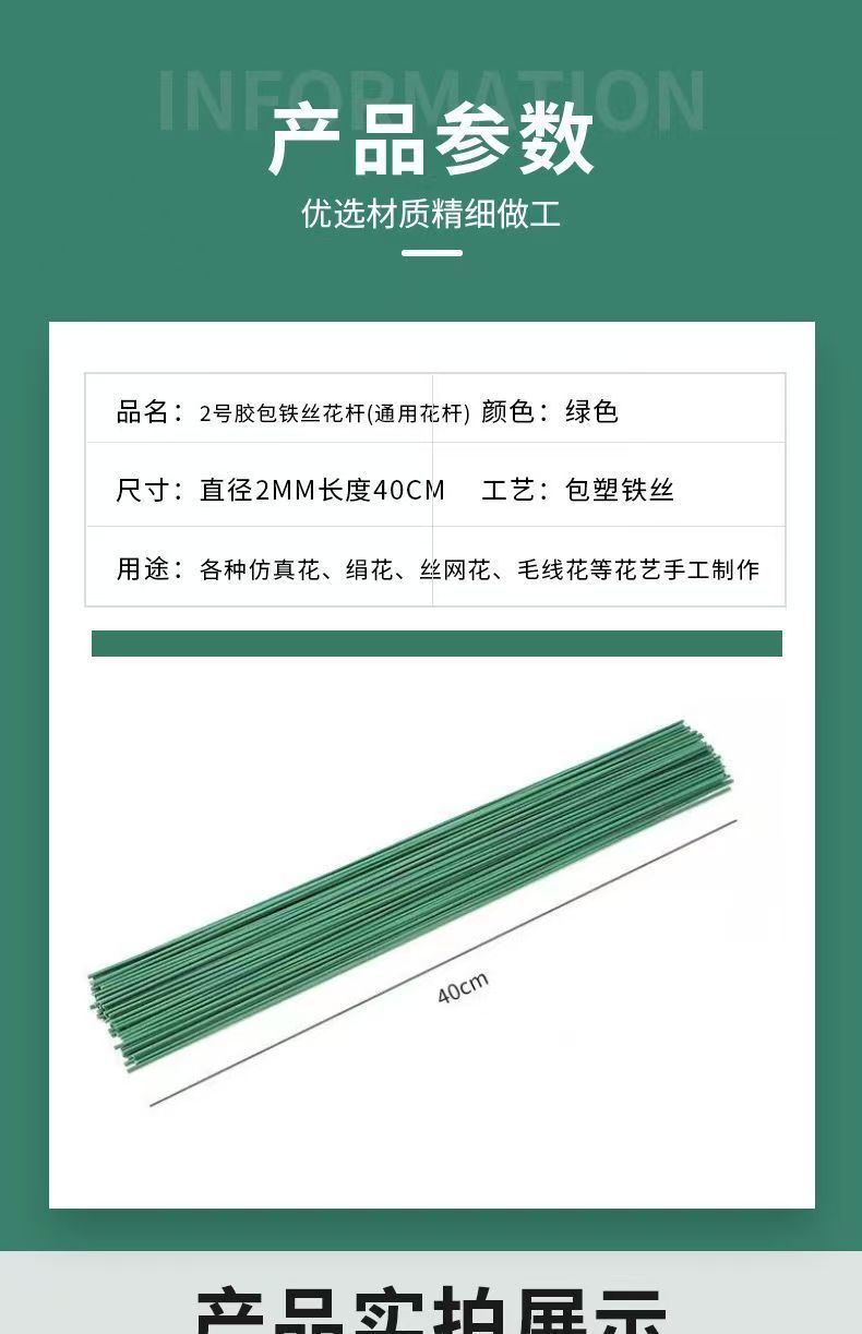2号花杆手工花艺diy材料假花绿色杆子仿真花枝包胶铁丝仿真绿植
