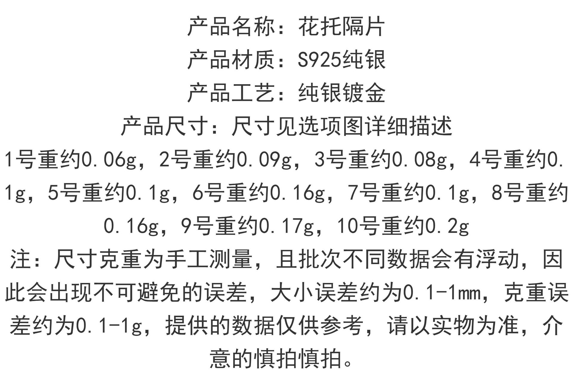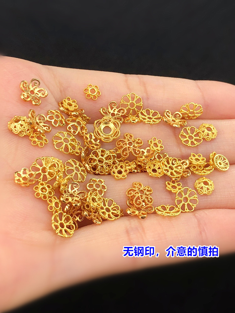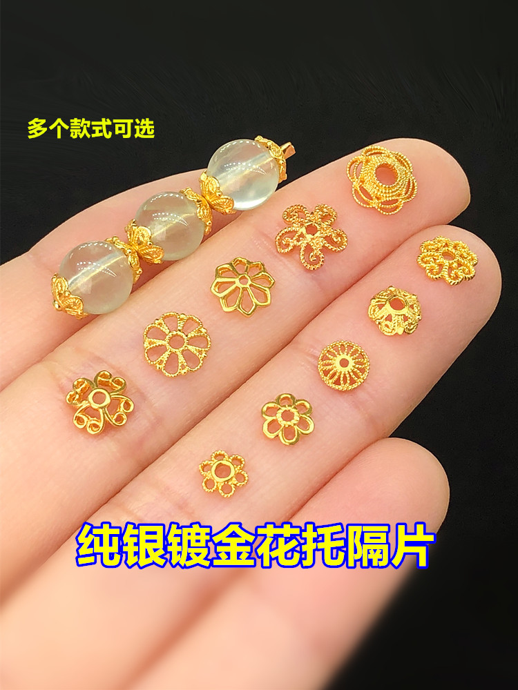按克称S925银镀24K金花托手链项链串饰diy配件手工隔珠半成品
