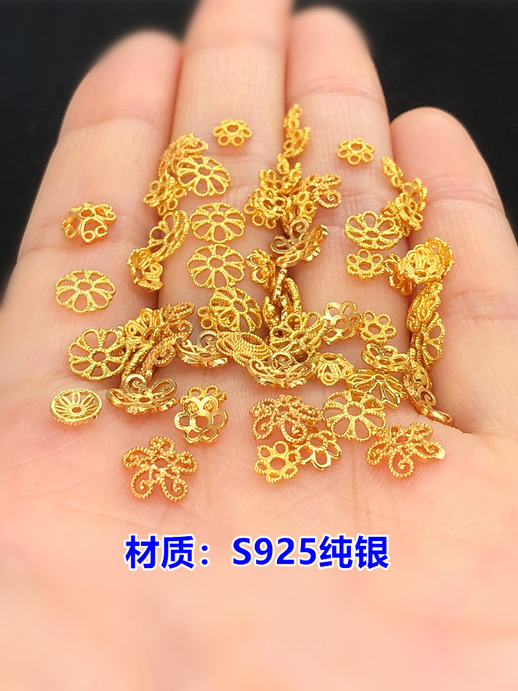 S925シルバー金メッキフラワートートビーズアクセサリーアクセサリーラウンドシルバースペーサー手ストリングジュエリーdiyアクセサリー手作り材料