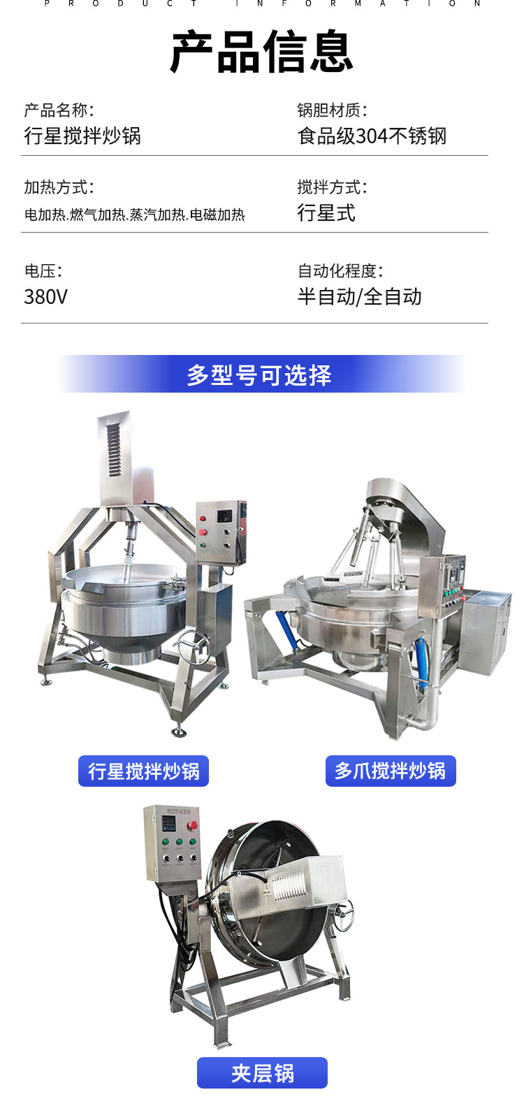 電気加熱式熱媒介層鍋 全自動ゼリー撹拌介層装置 ステンレスガス撹拌介層鍋