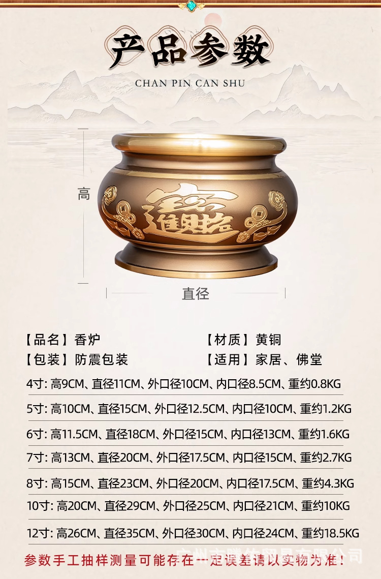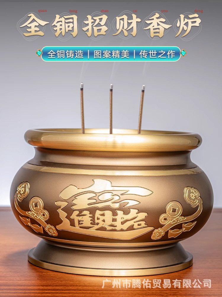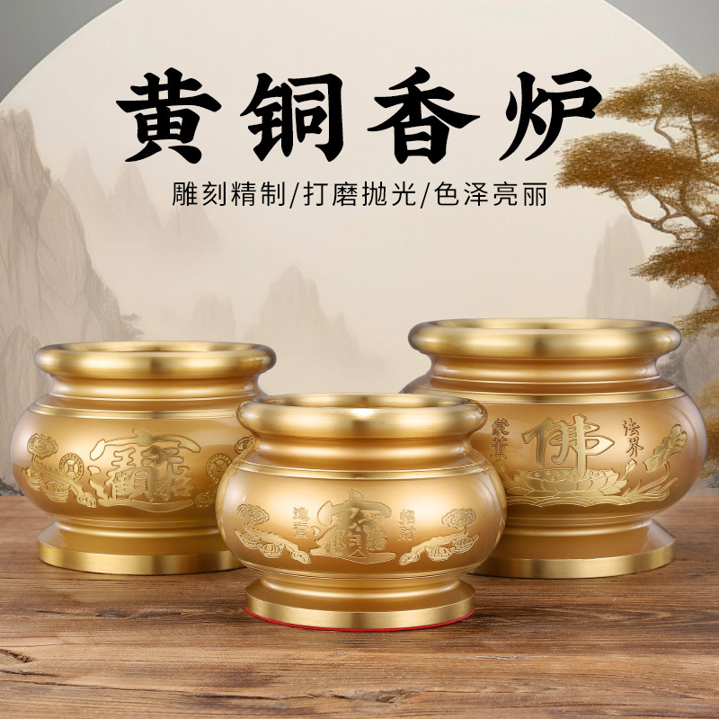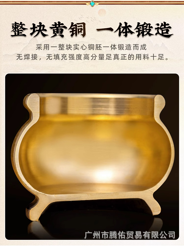 純黄銅香炉家庭用供仏禅意全銅香炉香挿し室内焼香供観音財神檀香炉