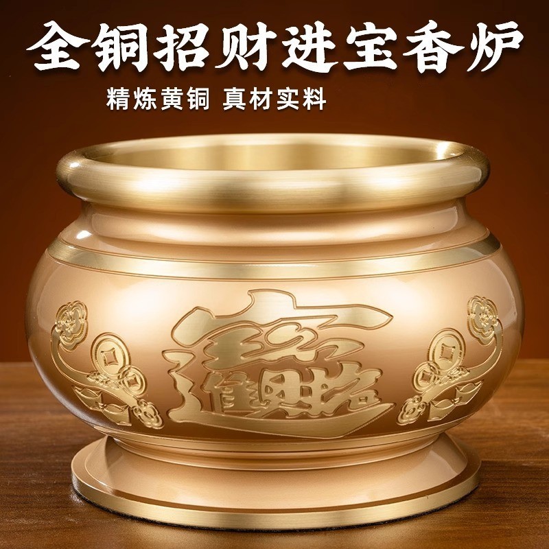 純銅の香炉の家庭用は香を焼く香炉の大サイズの財神の香炉の碗を供えます。