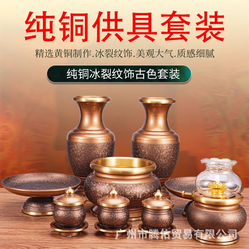 新商品純銅招財供具セット財神爺関公仏具用品大全香炉水杯供灯果物皿