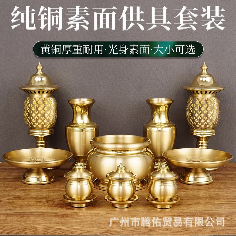香炉純銅家庭用供具セット観音蓮仏具用品大全長明灯給水カップ果物皿花瓶