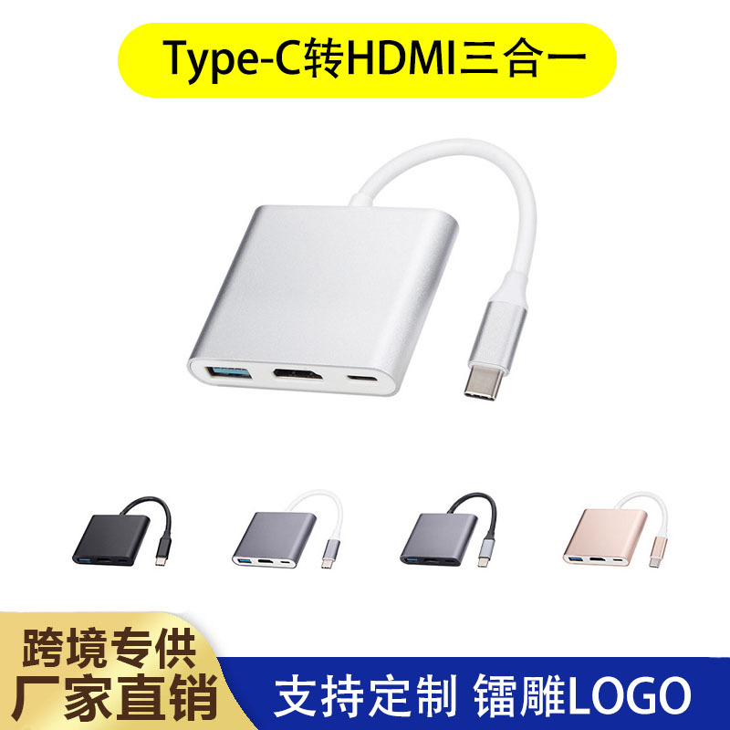 スリーインワンドッキングステーションタイプcからhdmi/usb/pdプラグUディスクプロジェクター4K高精細アダプタケーブル