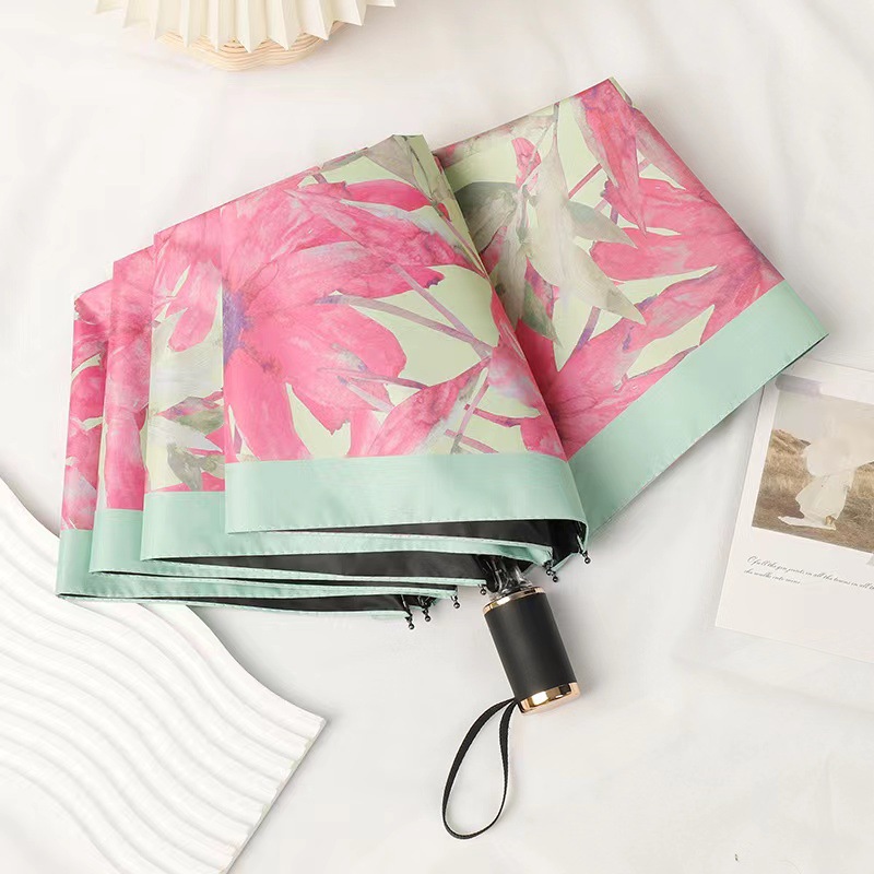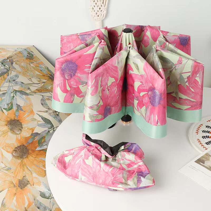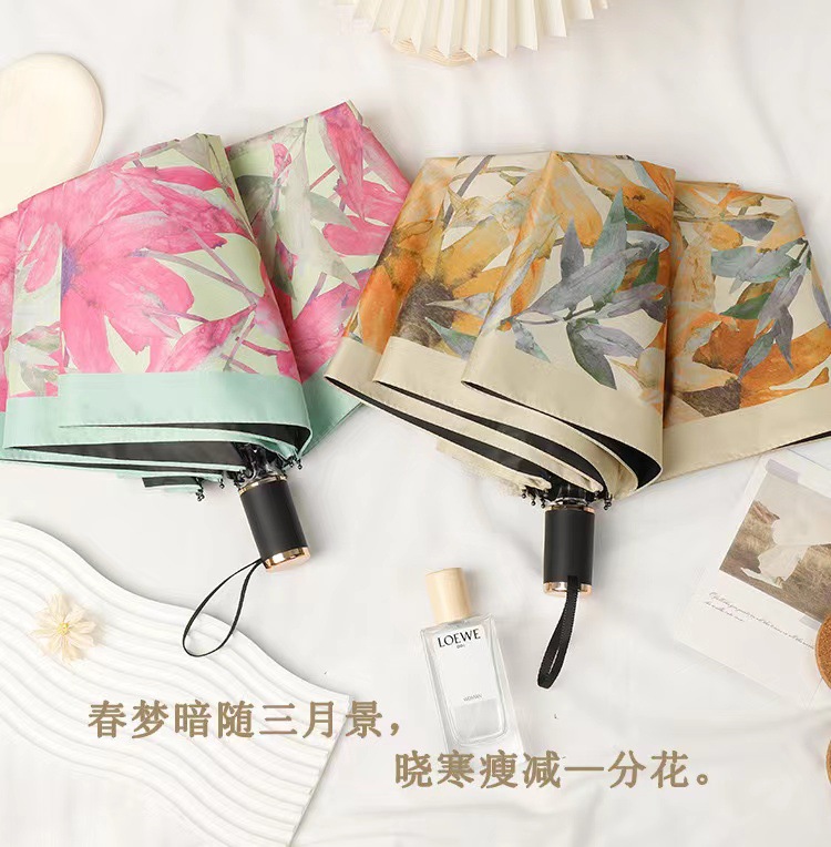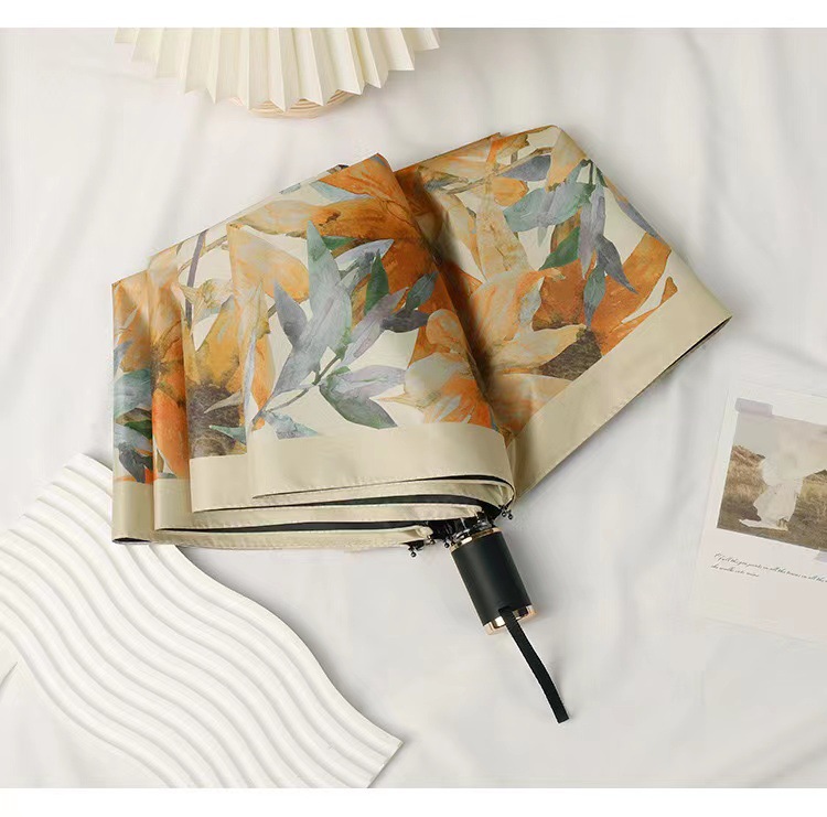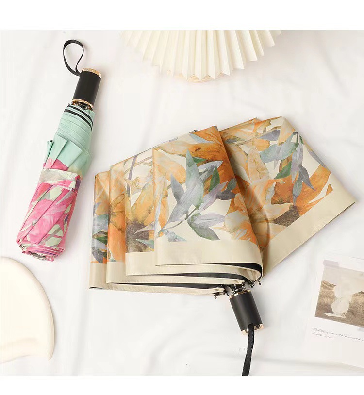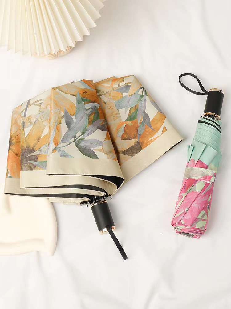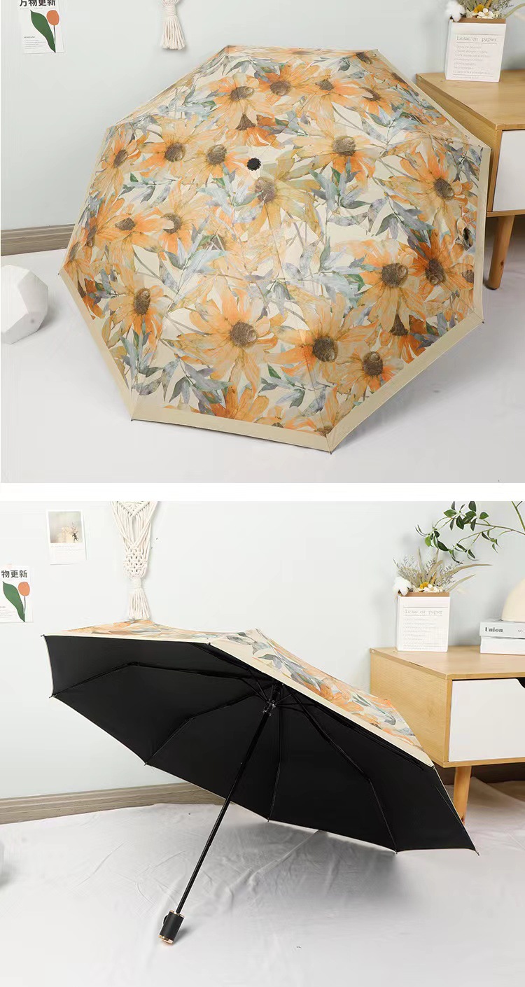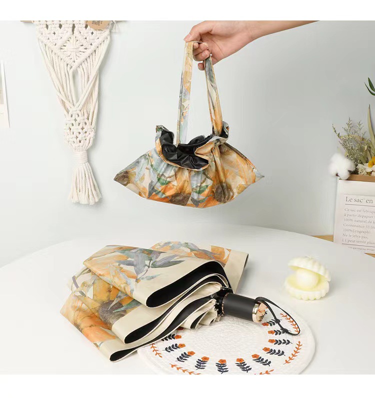 フレンチスタイルの黄色の花柄傘ポータブルビニール日傘日傘晴雨兼用抗UV