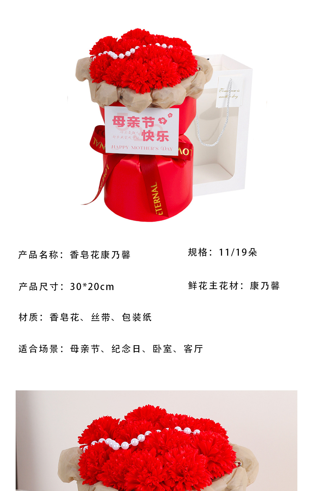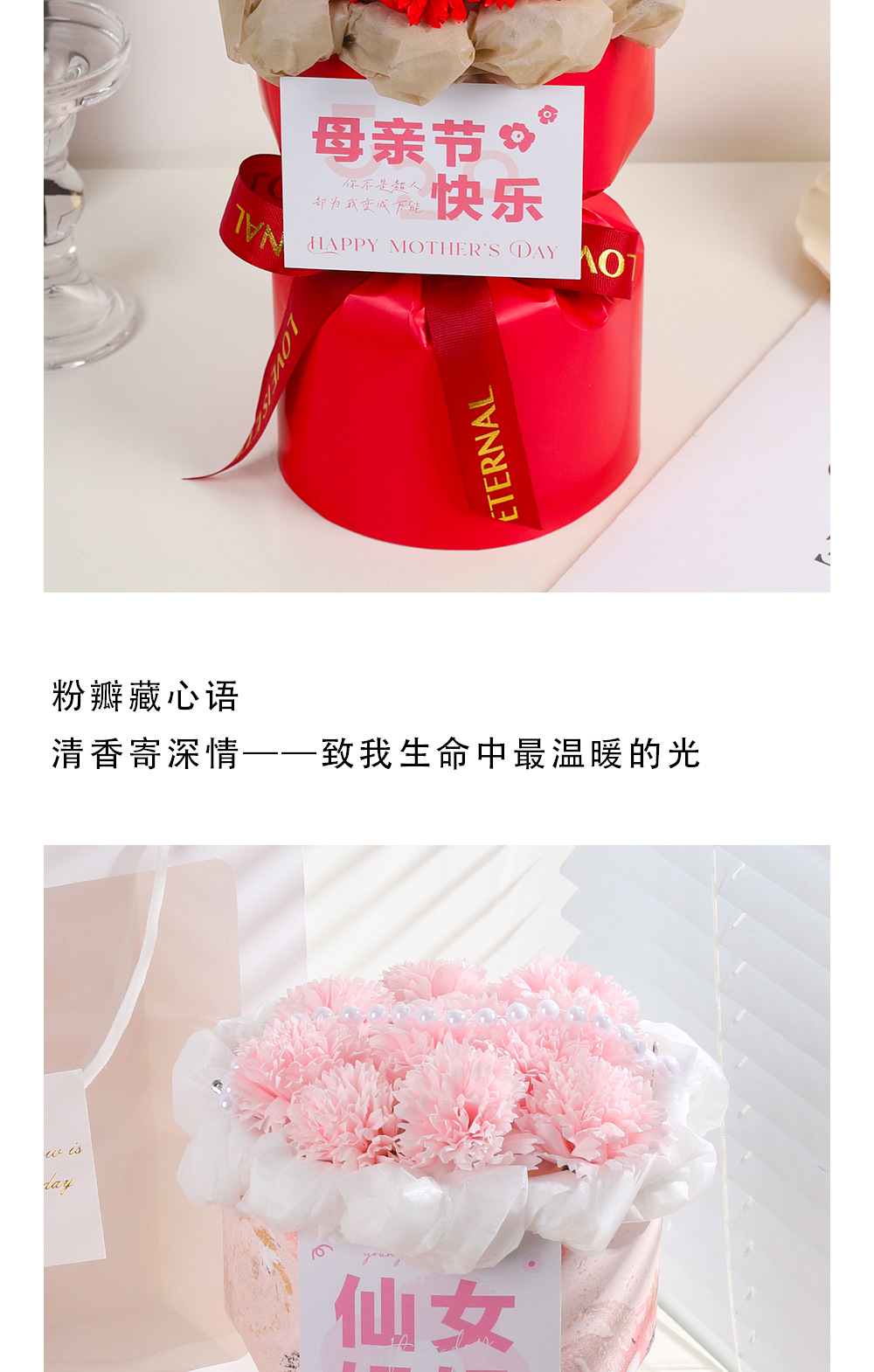 新しい母の日造花カーネーションブーケ完成品クリエイティブ誕生日ギフト永遠の石鹸フラワーギフト卸売