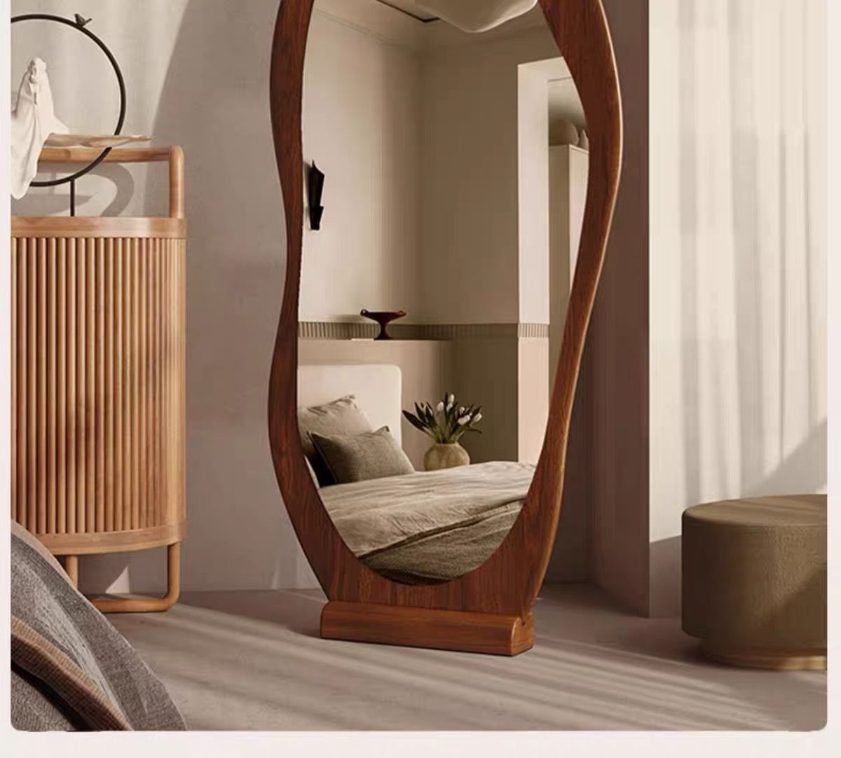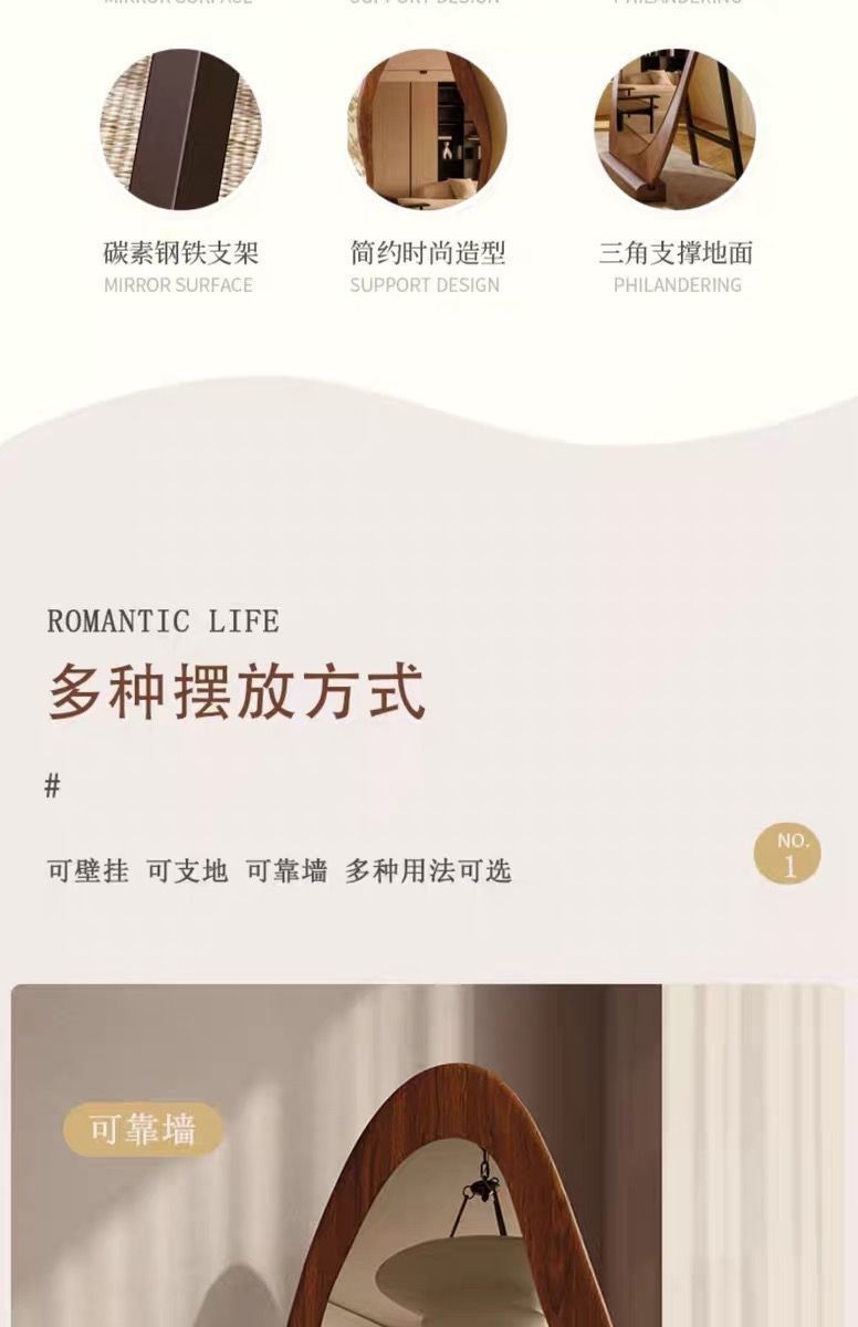 全身鏡フロアスタンドライト高級中国風レトロ家庭用フロアスタンドフィッティングミラーインターネットセレブ特殊形状壁掛けドレッシングミラー
