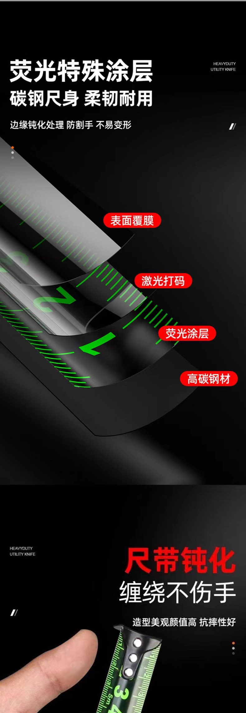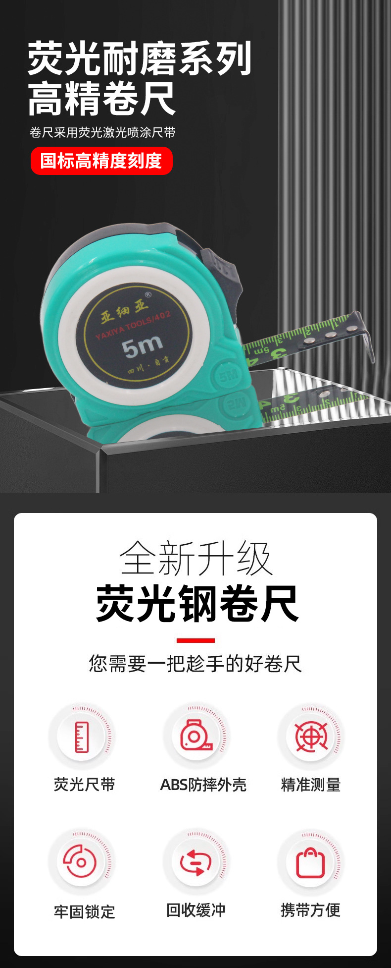 アジア巻尺 5m 落下防止、手の切断防止、厚みのある家庭用建設現場メジャー 7m 蛍光ステンレス鋼巻尺