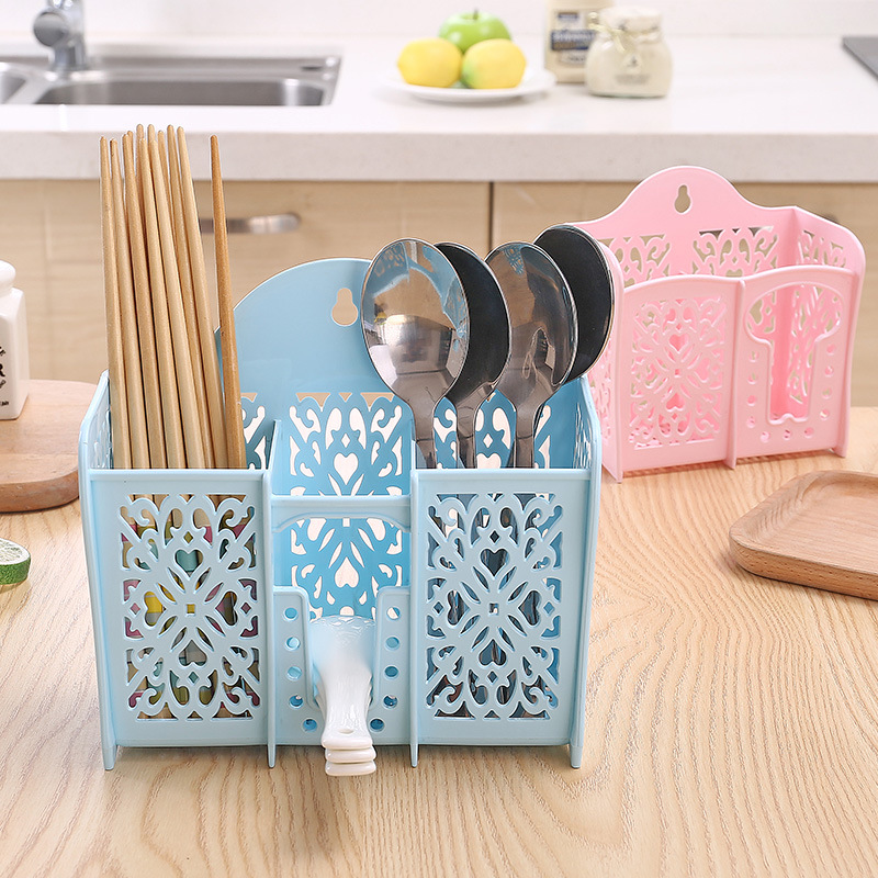 3024卸売りプラスチック透かし彫り三格箸籠台所用品食器収納棚プラスチックpp水切り箸筒