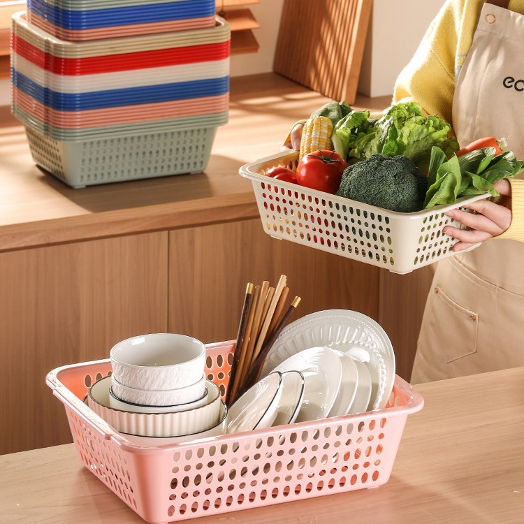 厚みのある排水バスケット、長方形のプラスチックバスケット、収納バスケット、白い仕分け正方形バスケット、プラスチック野菜洗いバスケット、果物と野菜のバスケット