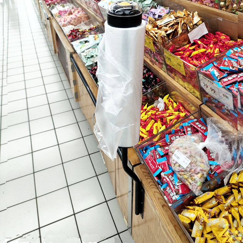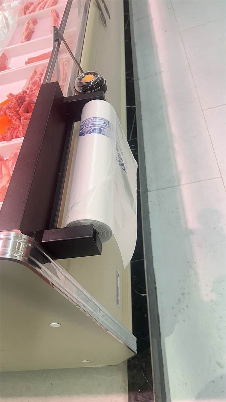 スーパーマーケットロールバッグホルダー棚食品保存ショッピングバッグ特別な配置棚吊り下げラックウェットハンドディスペンサー付き