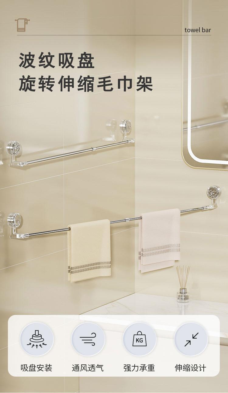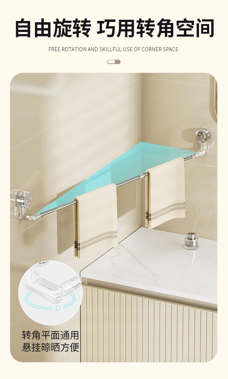 波形吸盤回転伸縮式ステンレス鋼タオルラック浴室バスタオルスリッパ防湿乾燥ラックパンチングなしライト高級