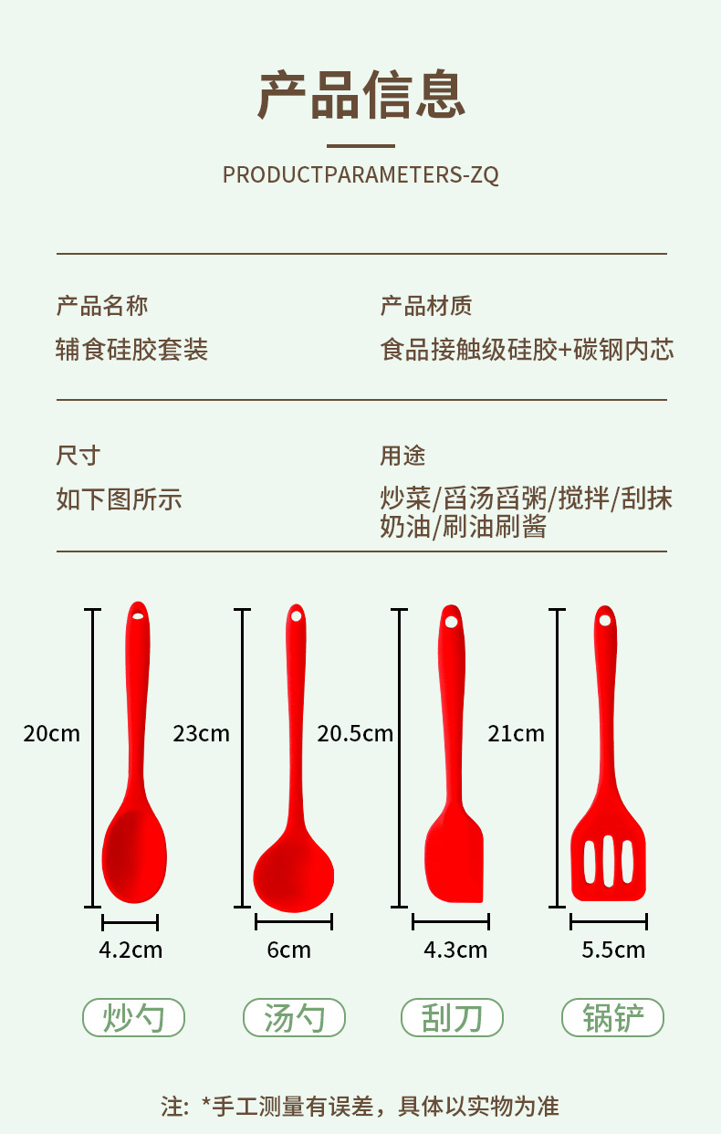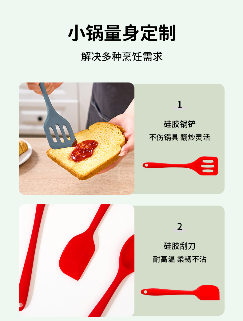 跨境爆款硅胶厨具5件套耐高温不粘锅烹饪硅胶锅铲日用餐厨