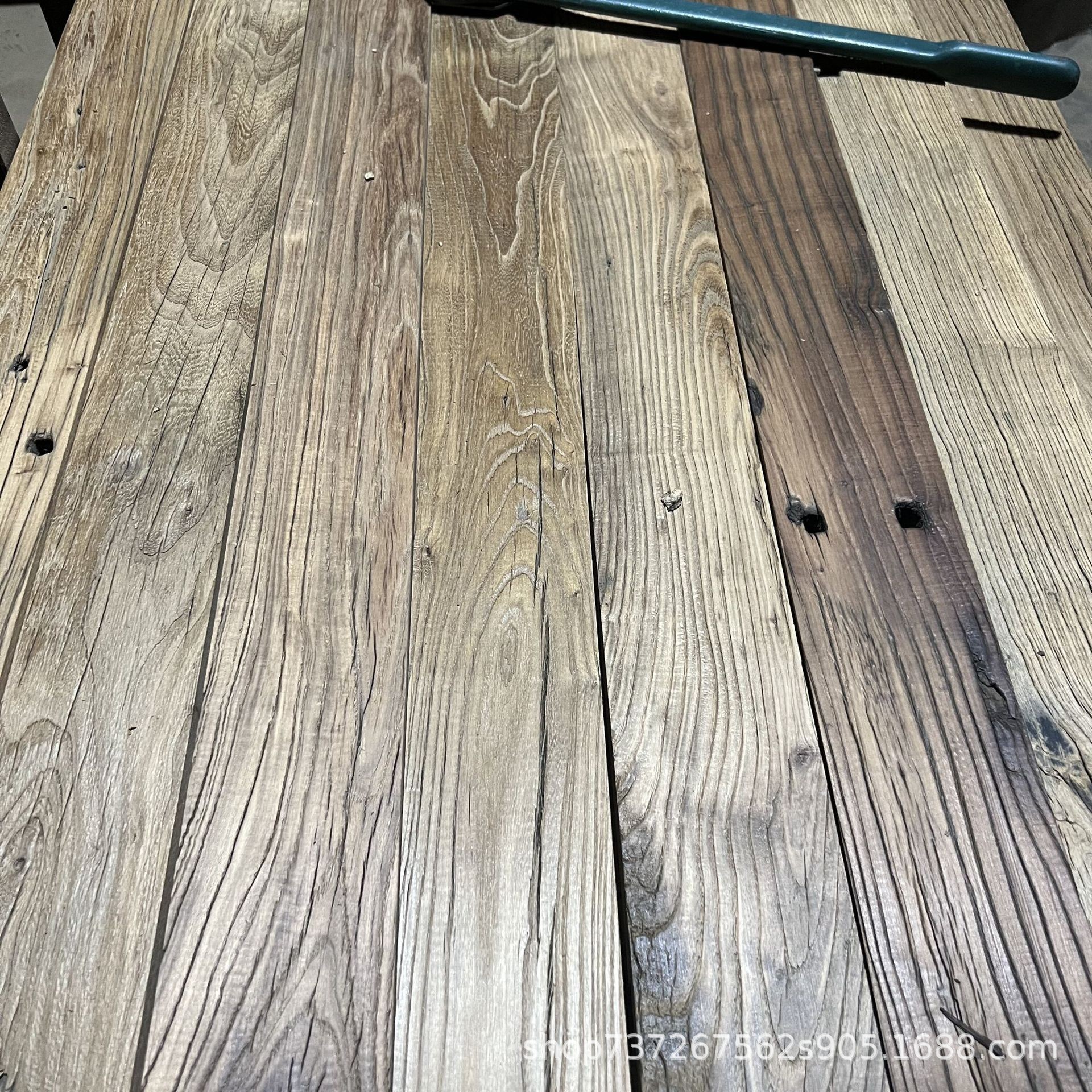 古い楡の木の風化の木の板材の古い扉の板の民宿は壁の板の実木の床を装飾して天板の階段をつり上げて板材を踏みます。