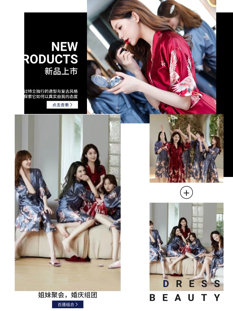 产品符合家居睡衣,婚庆新娘伴娘,可家居可外穿,可分开单排百搭组合,不分年龄段。