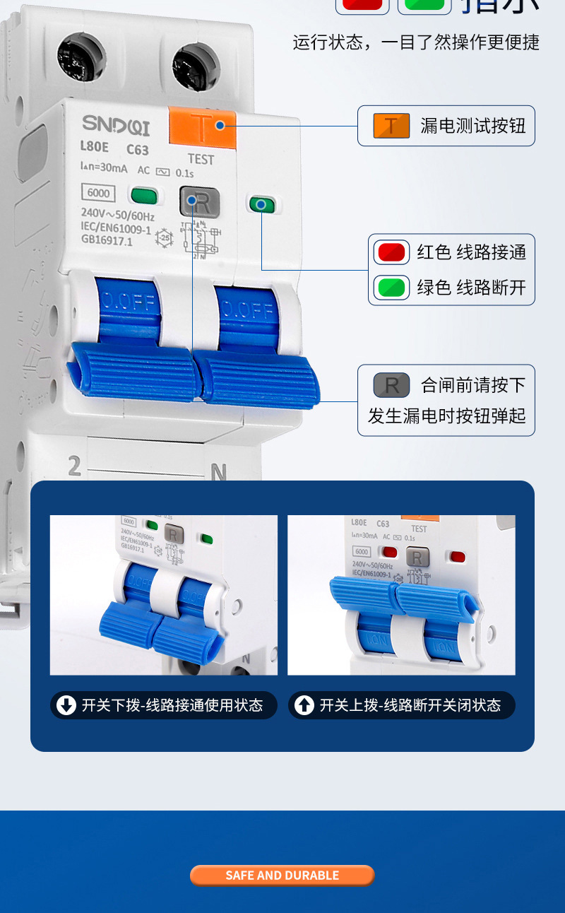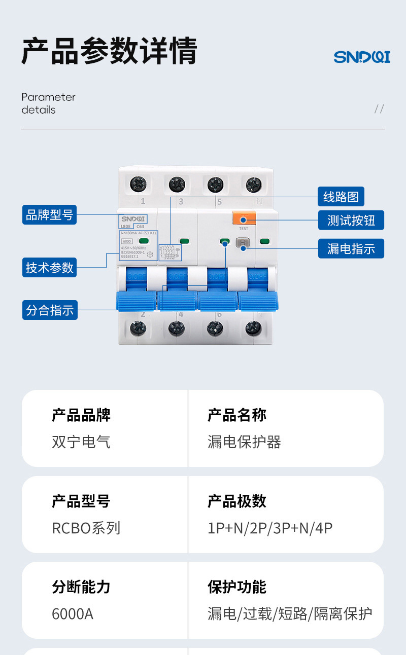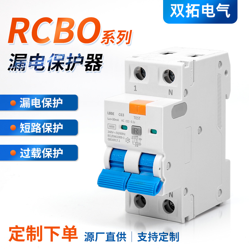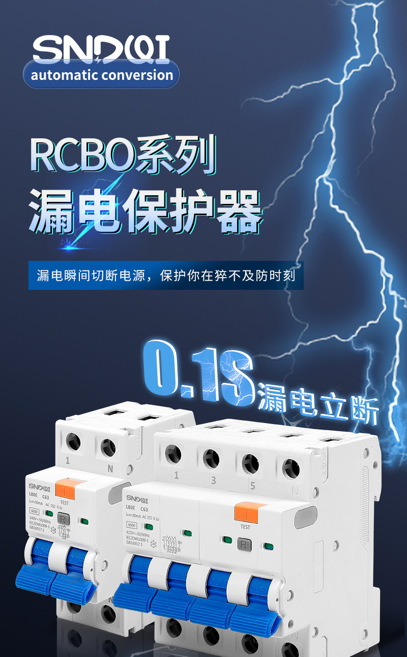 一体式RCBO漏电保护器电子式ELCB漏电保护开关2P 4P漏电CE认证