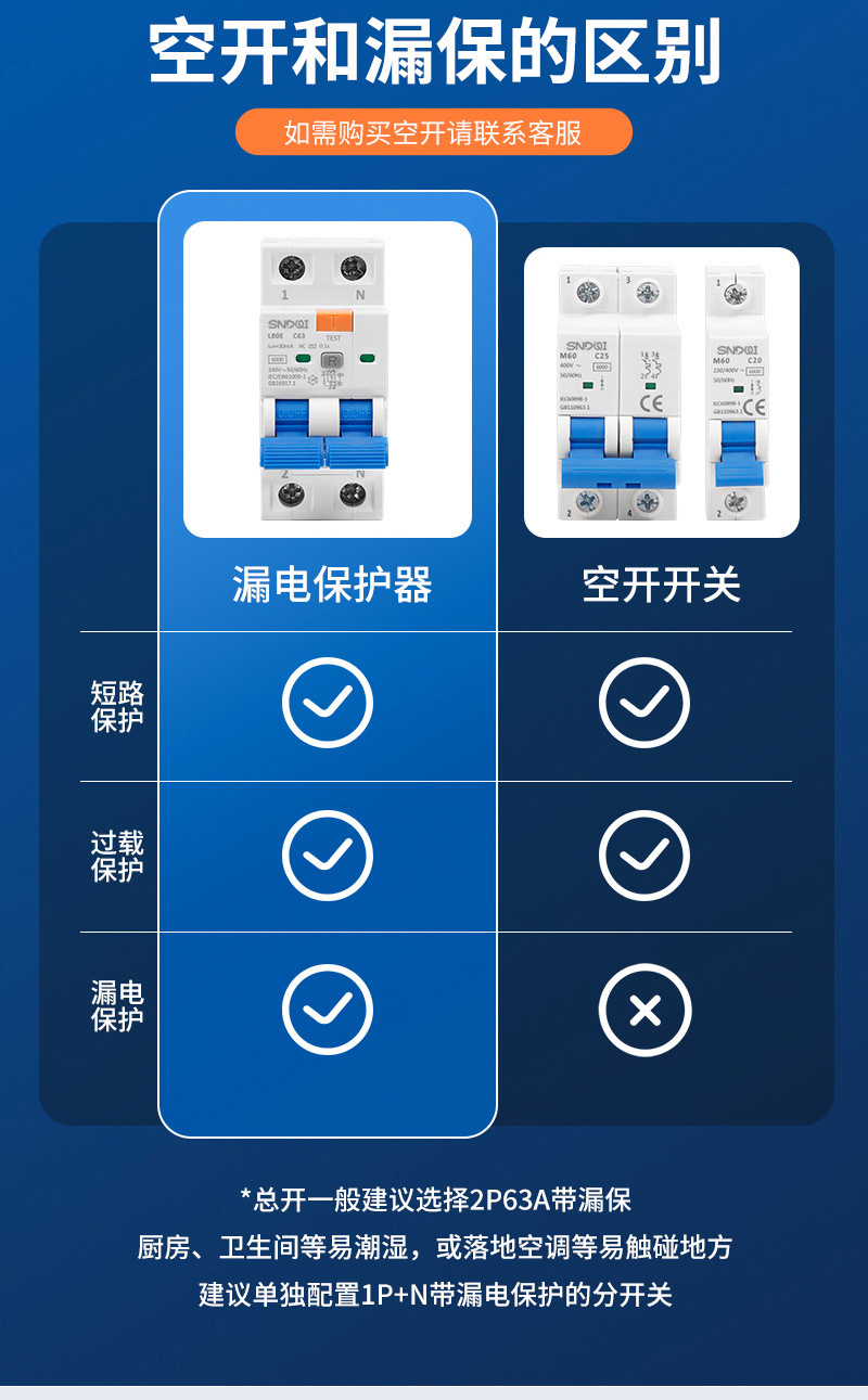 一珠バイポーラ2p漏電保護器家庭用室内電気スイッチ