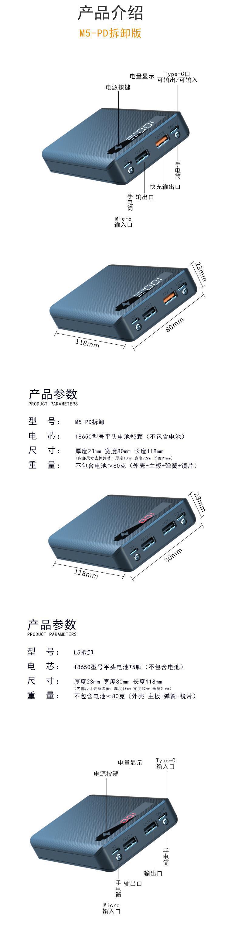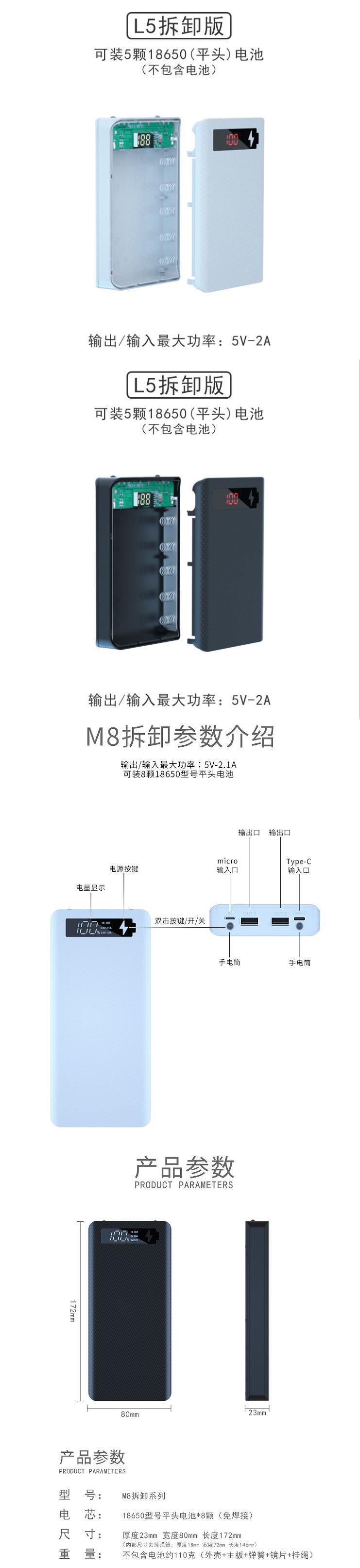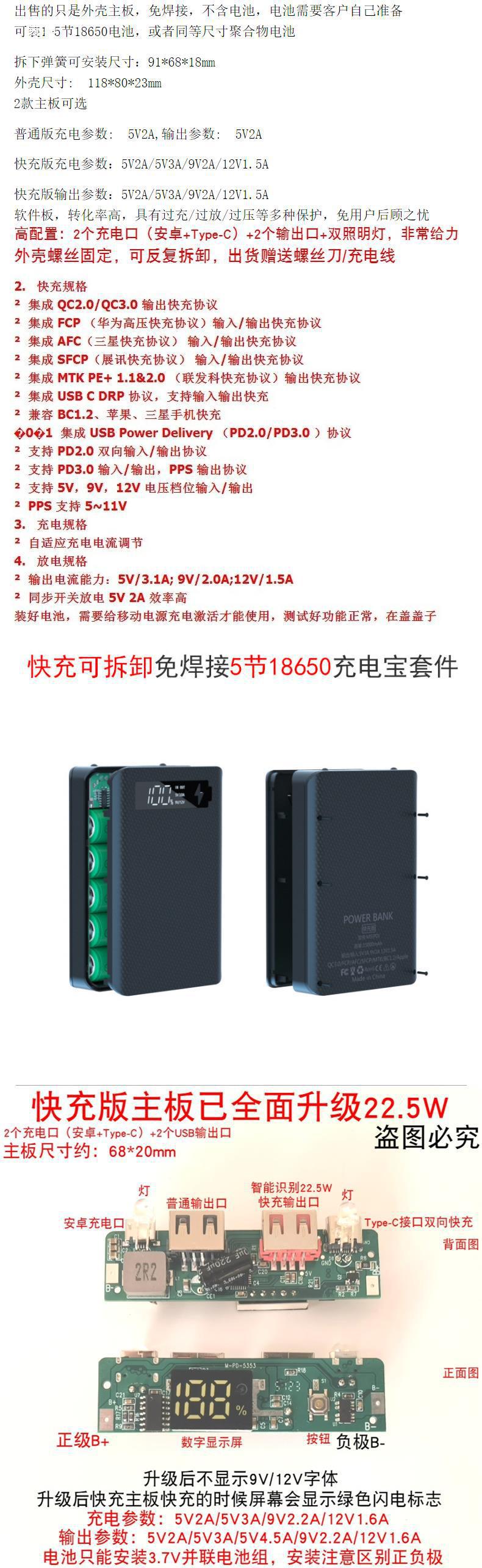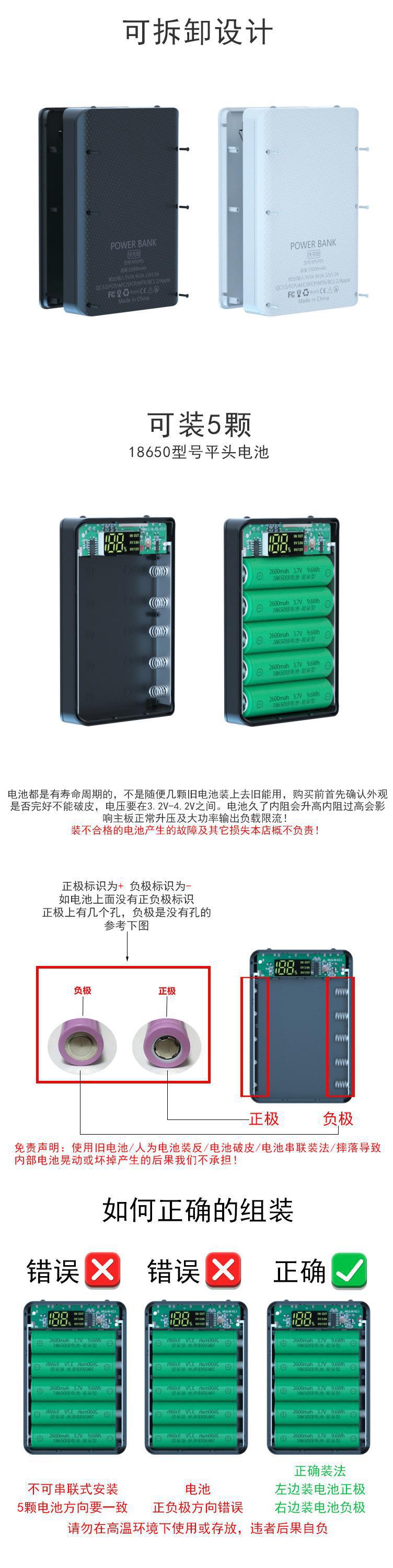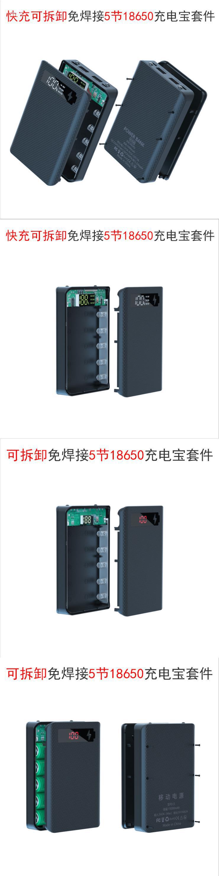 5節急速充電移動電源無溶接キット無線充電宝ケースDIYセット18650電池ケース