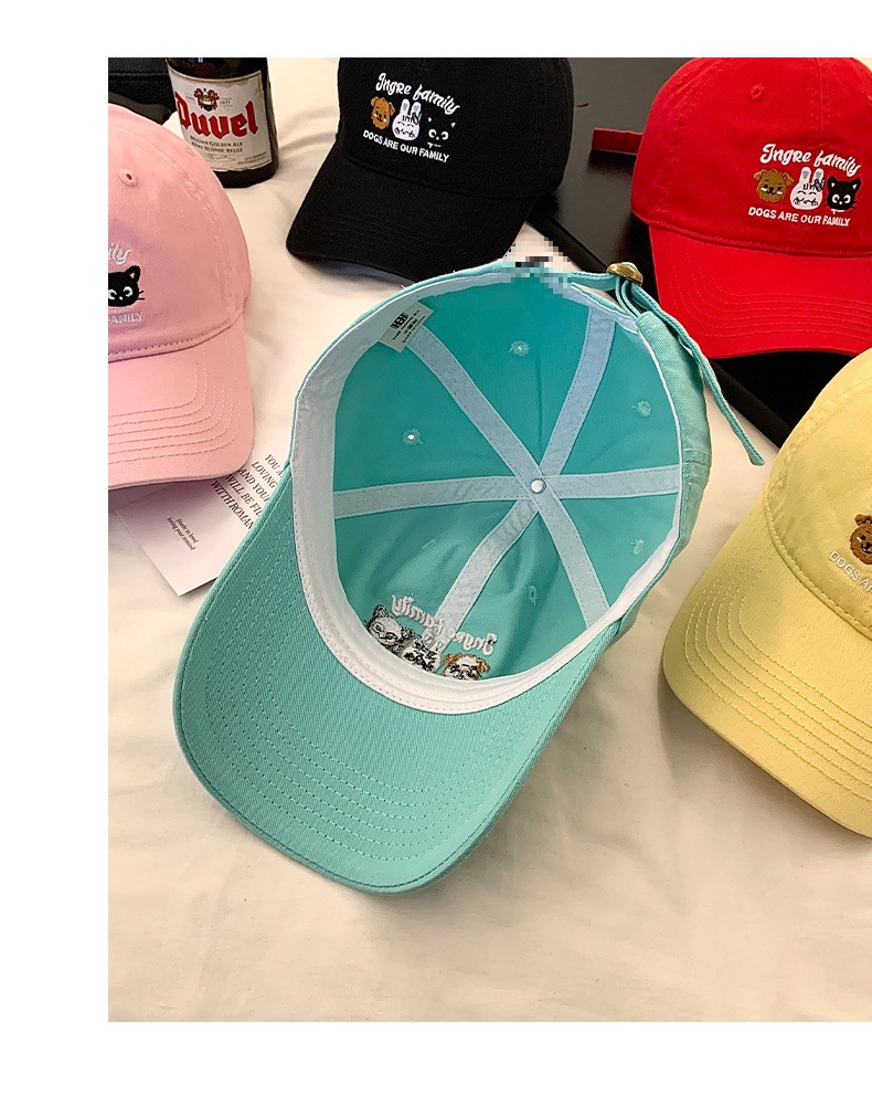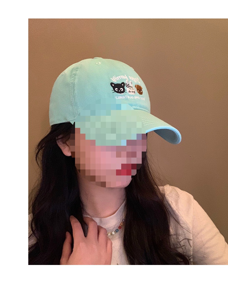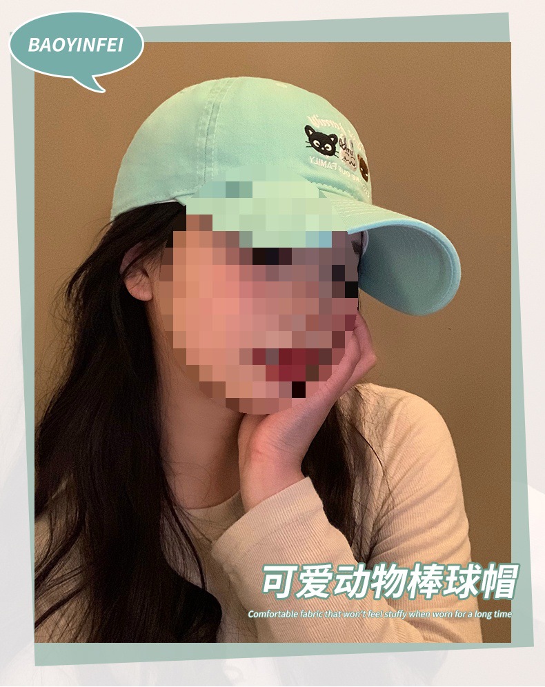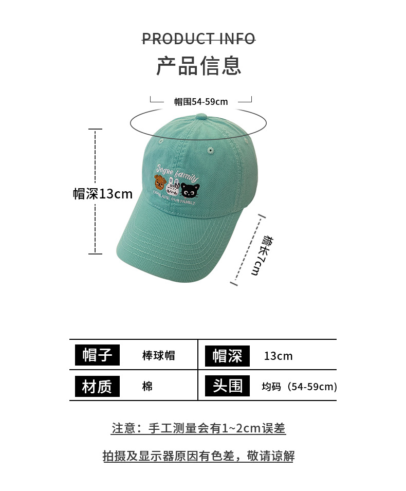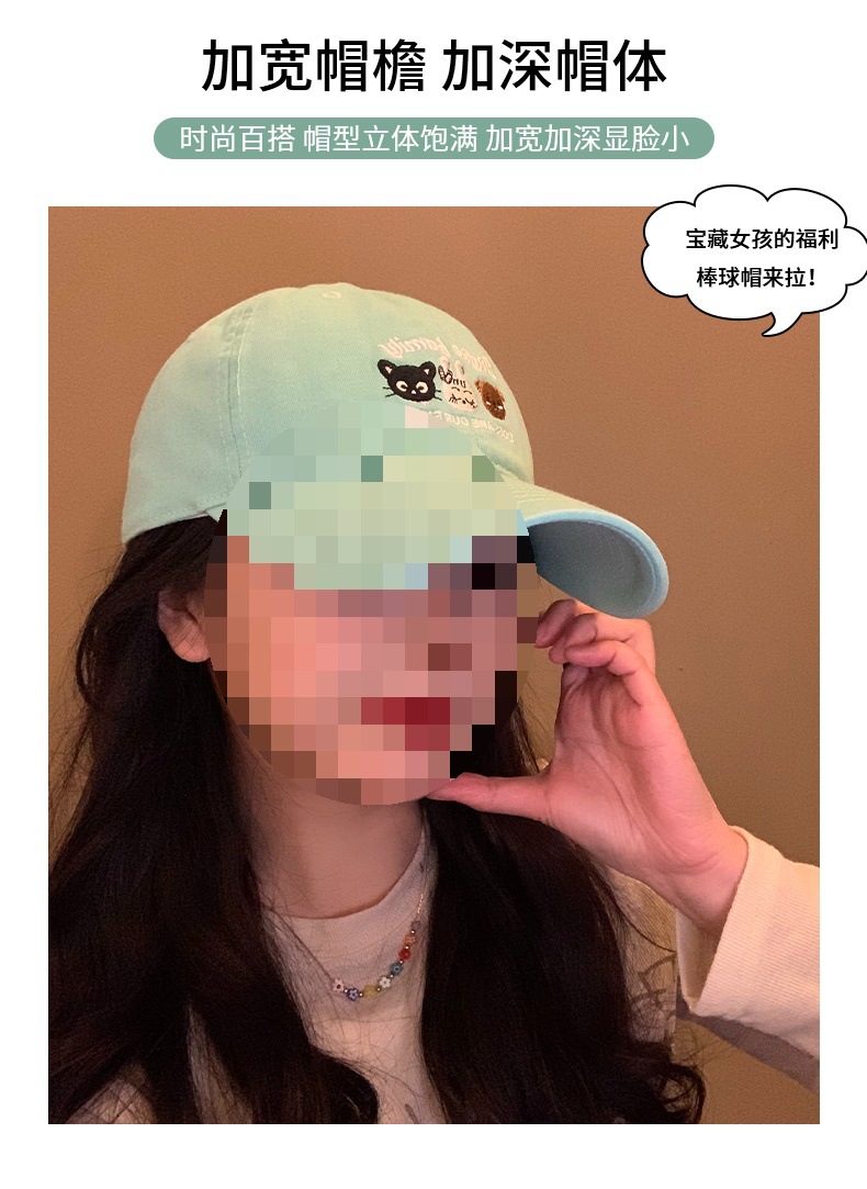女性用グリーン刺繍野球帽、韓国風、多用途、大きな頭囲、顔が見える、小さなひさし付きキャップ、つばの広い帽子、大きな顔、深いトップハット