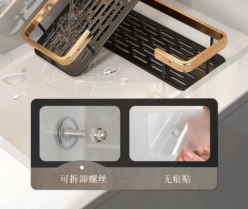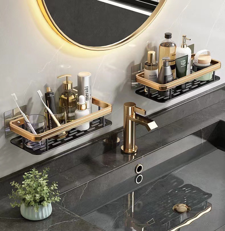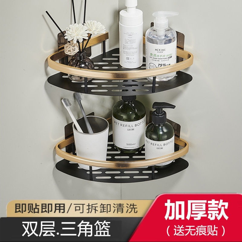 太空铝浴巾架收纳架浴室免打孔置物架吸盘式置物架免钉三角长方