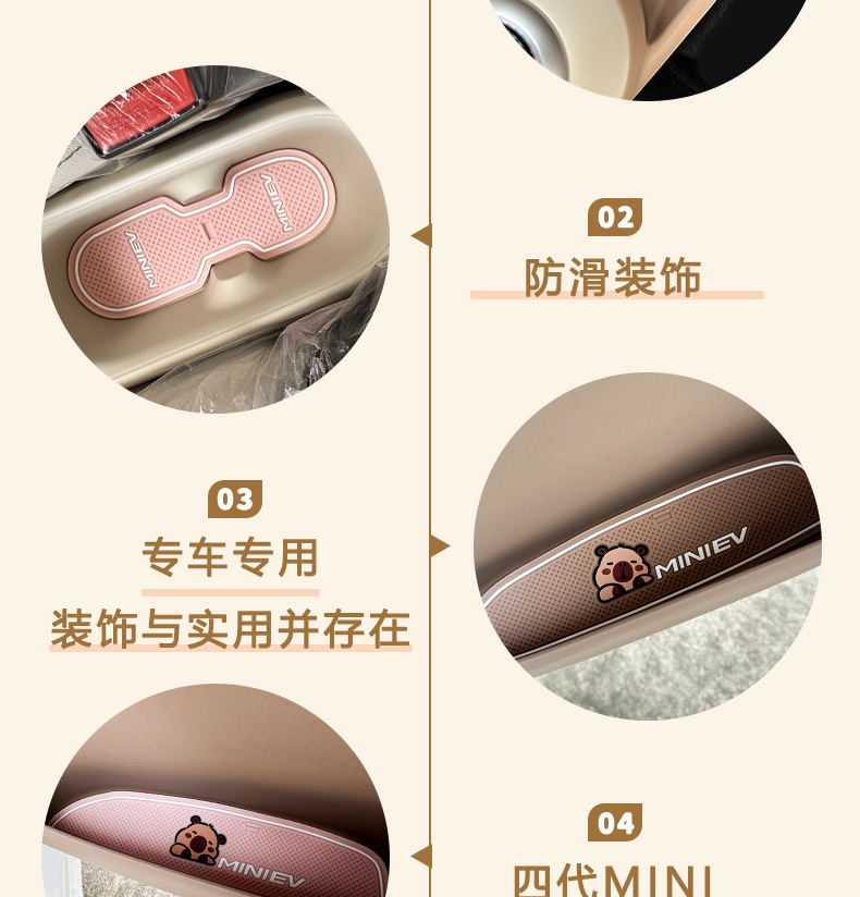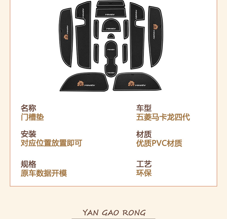 五菱宏光四世代マカロン門溝マット水カップマット25種類四門miniev滑り止めマット貯蔵槽装飾