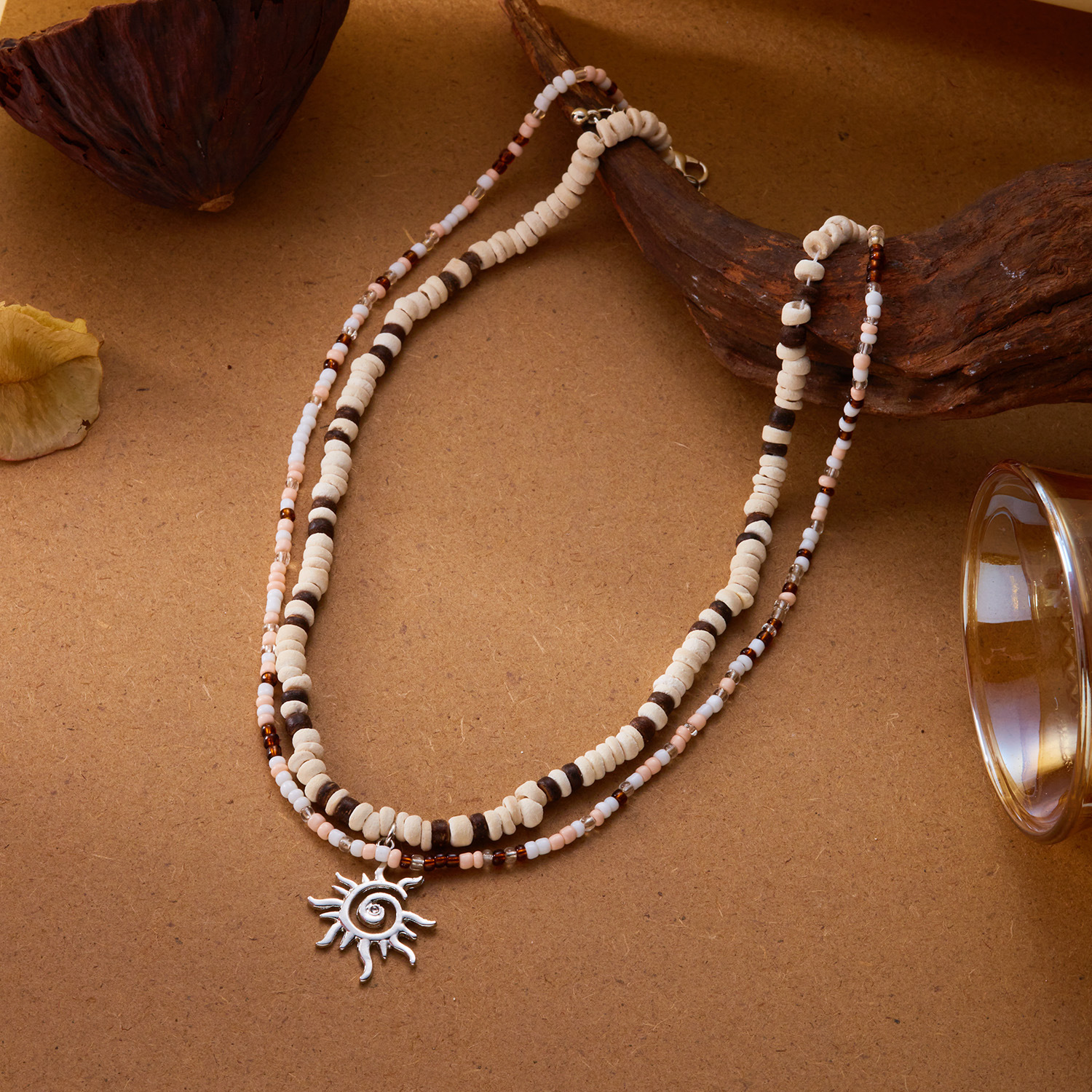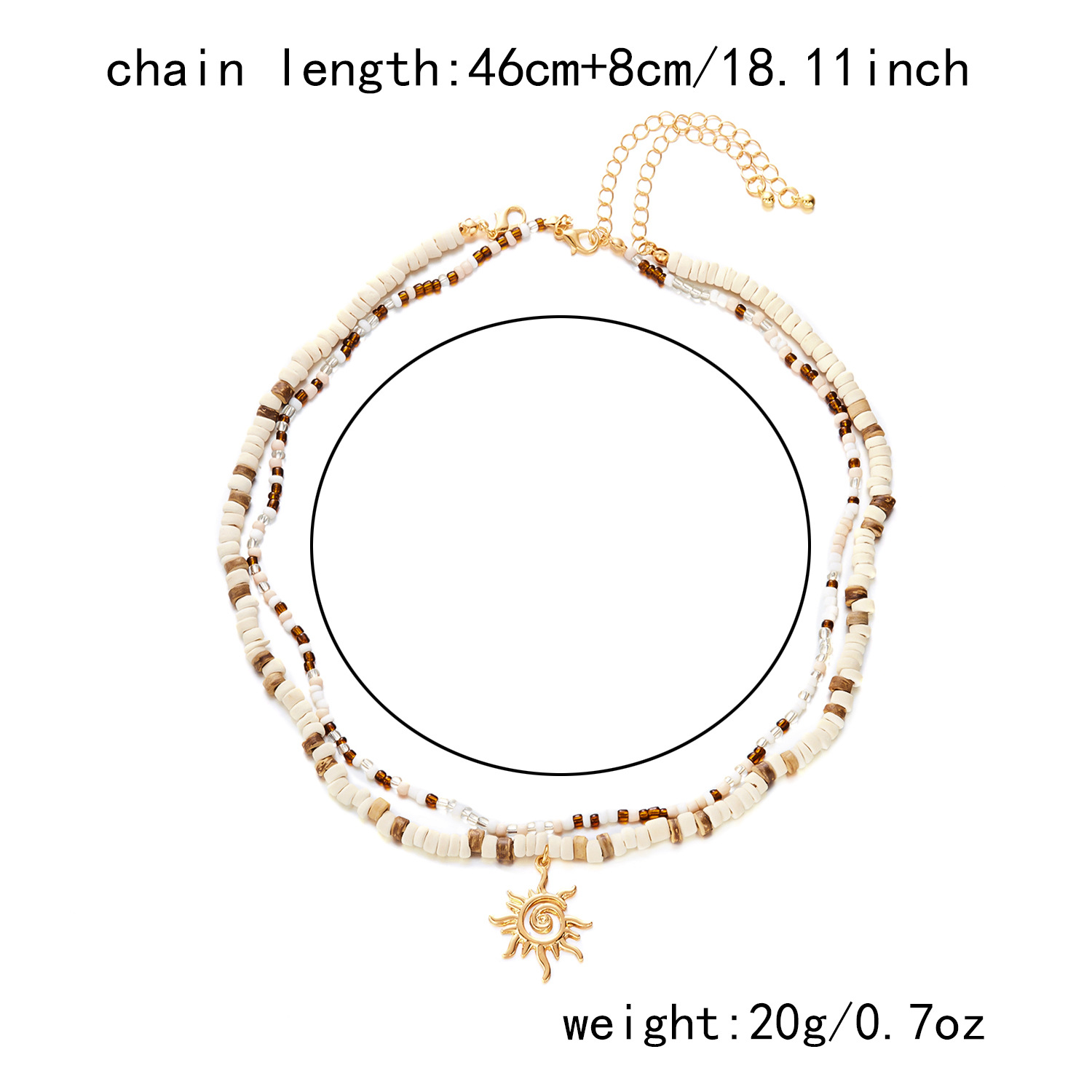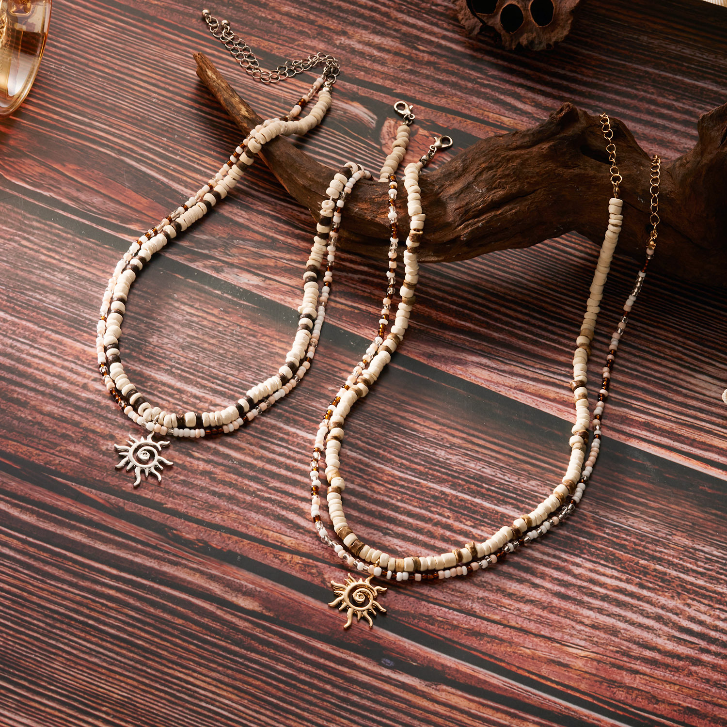 国境を越えたネックレス夏のレジャー休暇風ココナツ殻木珠米珠太陽ペンダントネックレスセット女性小衆アクセサリー