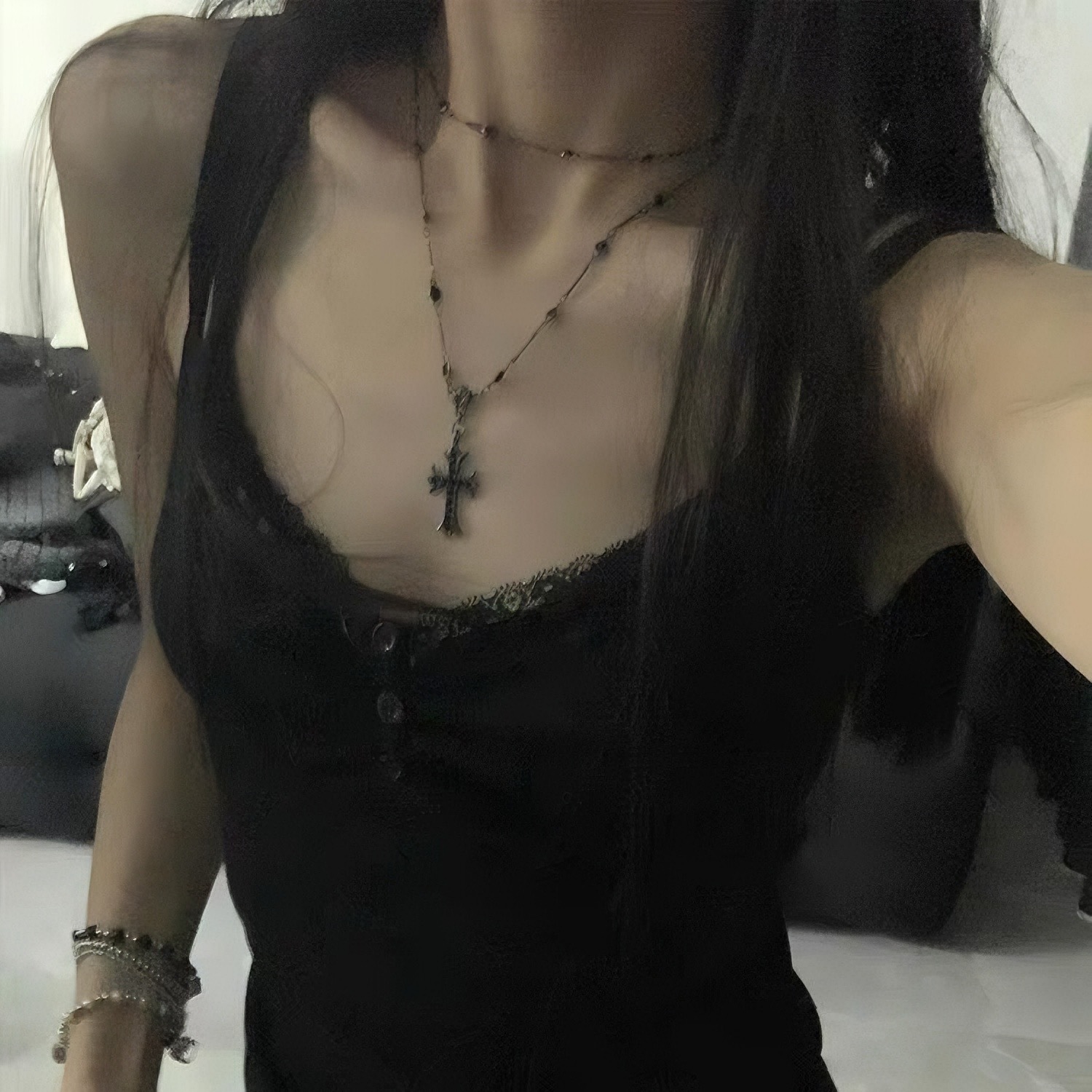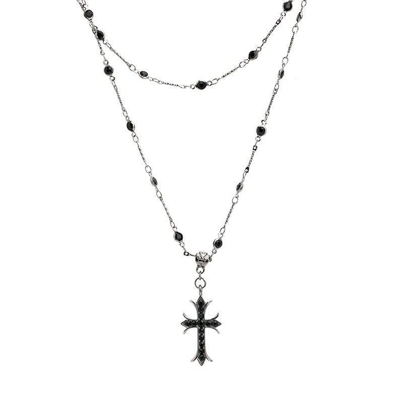 ガンブラッククロスネックレス甘くてクールなホットガール二層鎖骨チェーン女性のハイエンドチョーカーネックレスアクセサリー