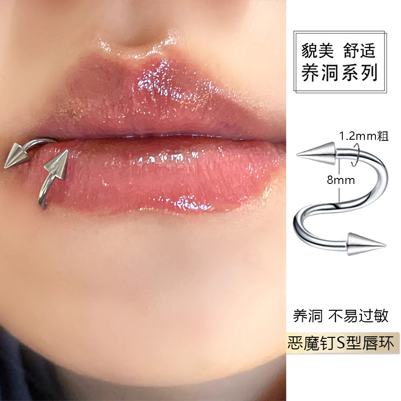 サタンの子供メロディーリップグロスチタンスチール外ネジs型リップグロスギャル甘いクールピアス
