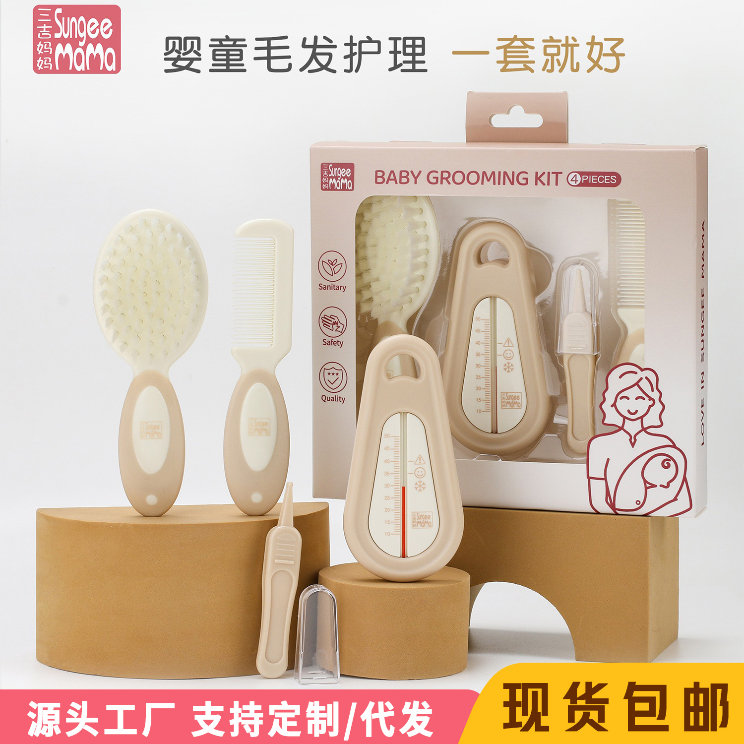 ベビーバスコームブラシベビーソフトヘアコームブラシ脱毛ブラシ水温計セット新生児ヘッド丸頭コーム