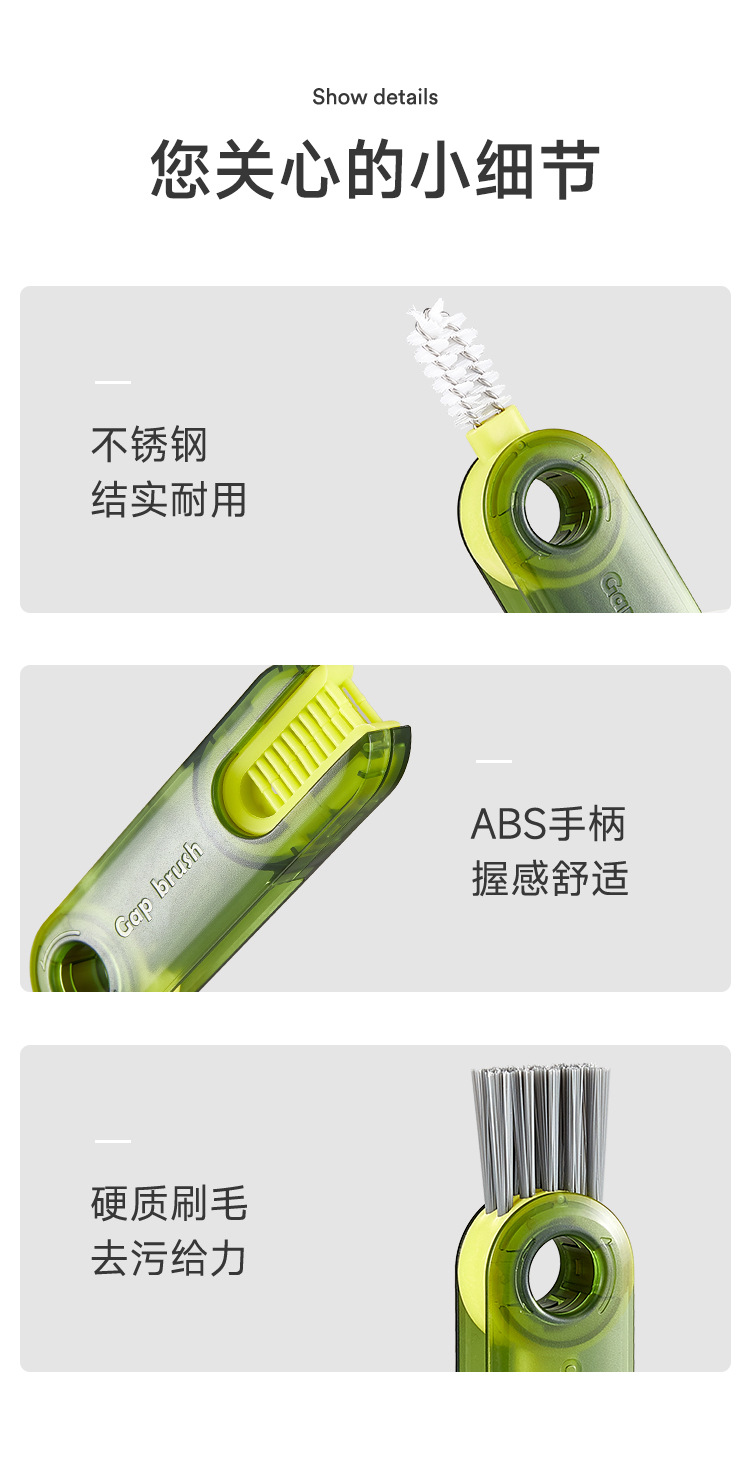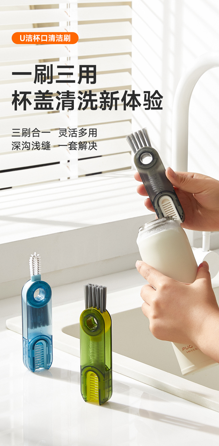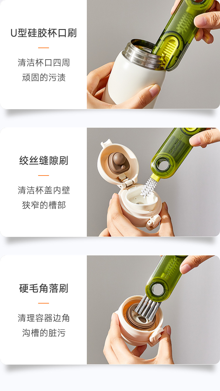 三合一杯刷神器洗杯子刷子保温杯奶瓶盖缝隙清洗刷u型凹槽清洁刷