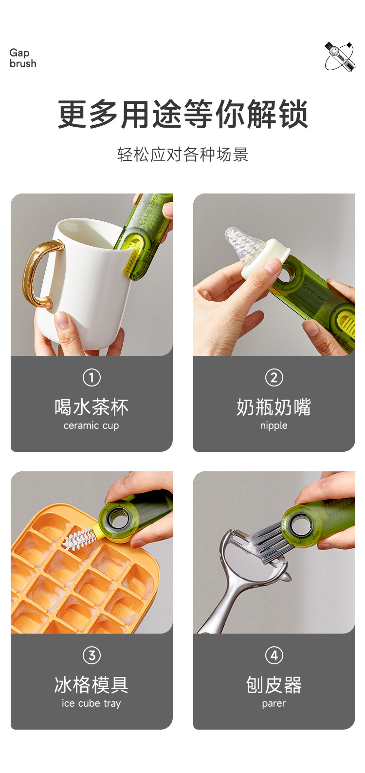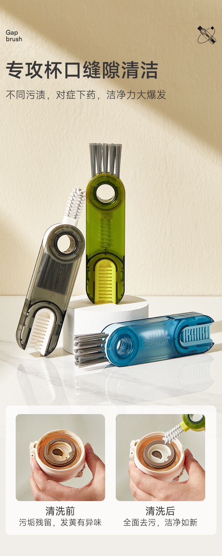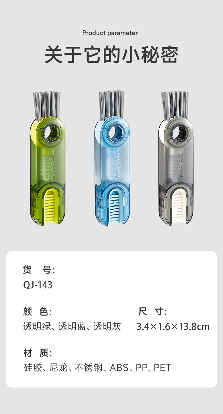 三合一杯刷神器洗杯子刷子保温杯奶瓶盖缝隙清洗刷u型凹槽清洁刷