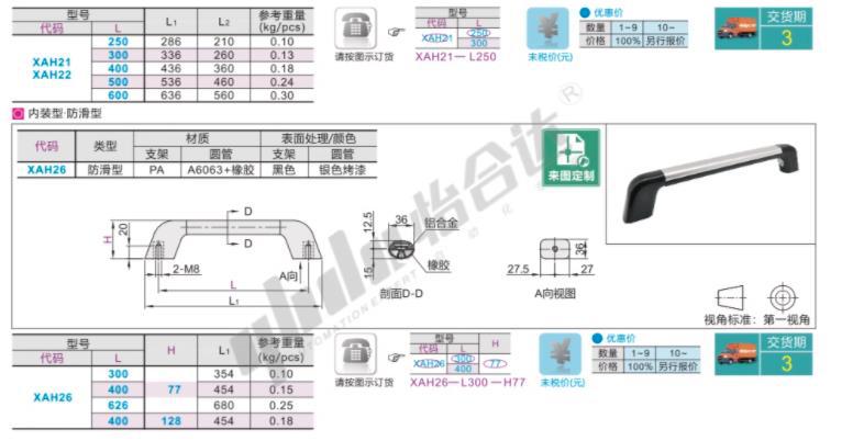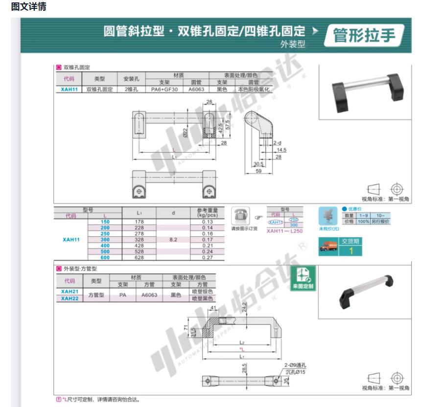 Yiheda XAH11-L150/200/250/300/400/500/600 斜め引き管型ハンドル外装タイプ