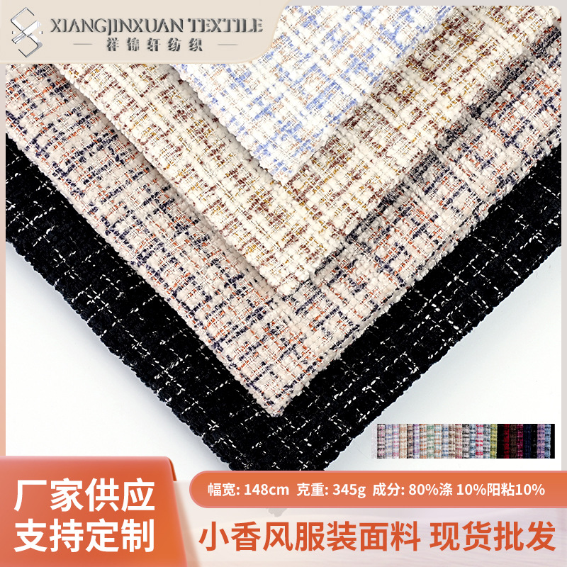 粘涤阳小香风服装面料秋冬款雪尼尔粗纺外套时装布料花呢衣服面料