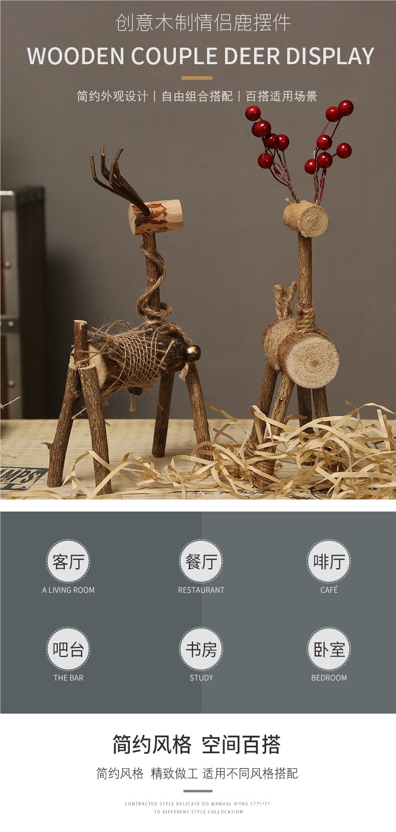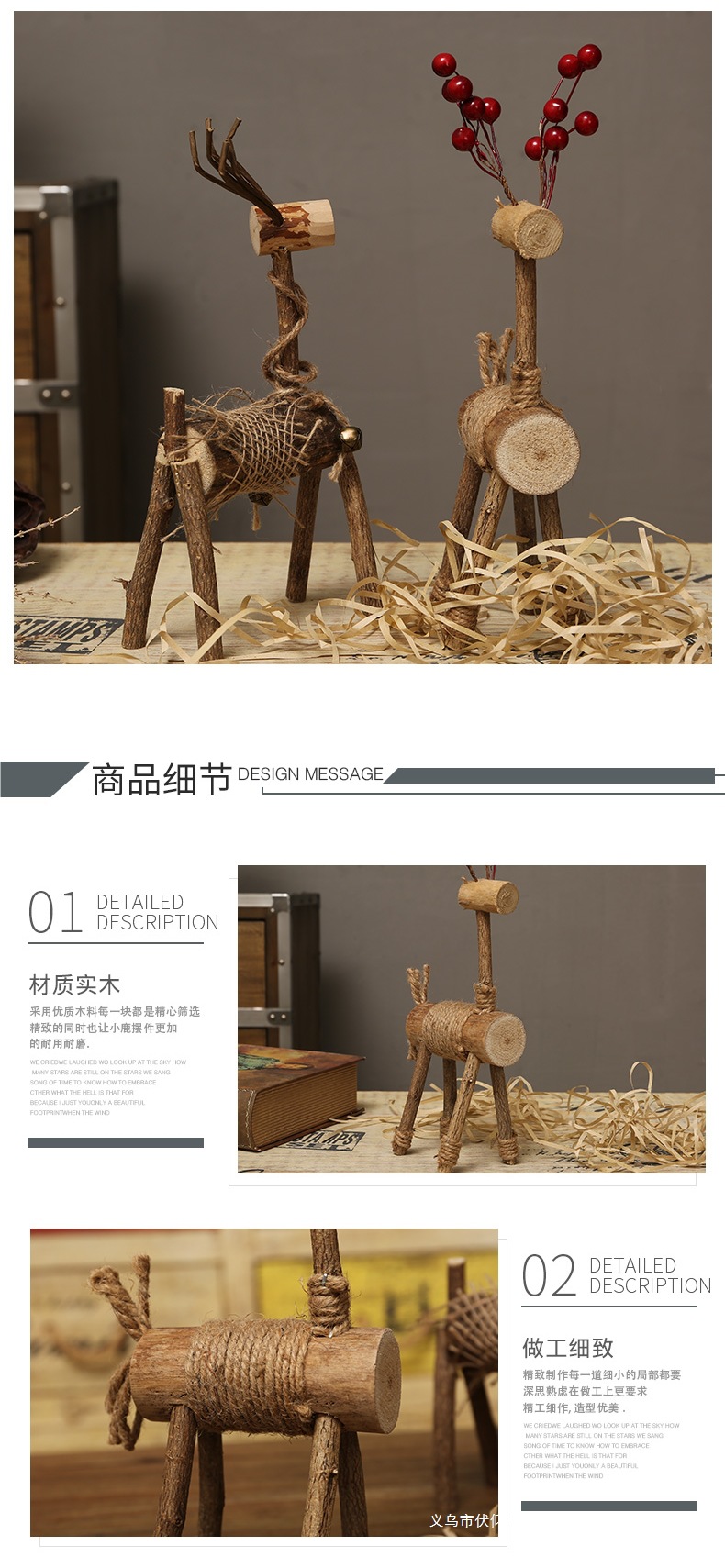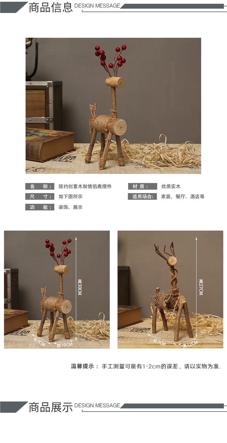 手作りの木製鹿の装飾装飾品木製ルームデスクトップアレンジメントホームアクセサリークリエイティブ木製工芸品