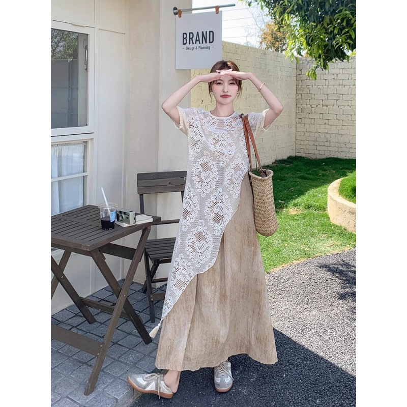 2025年初夏着用大きいサイズ婦人服フレンチレイヤードスーツサスペンダースカート太ったmmお腹カバーレースドレス