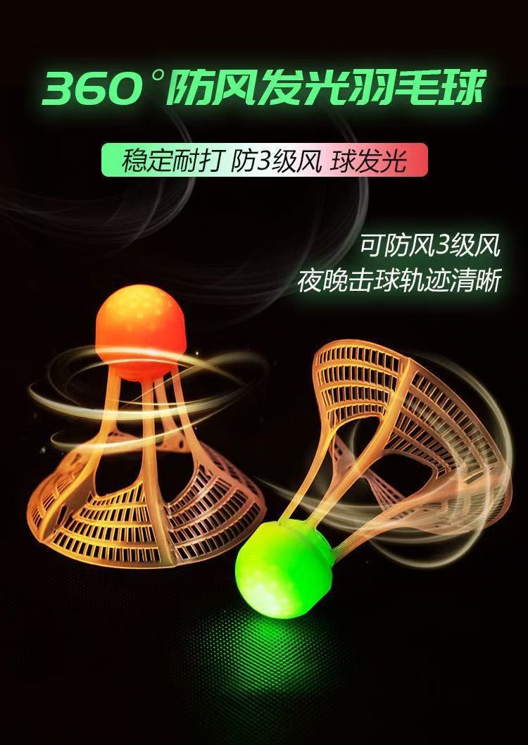 光るバドミントンの夜は屋外の防風ボールでプラスチックゴムのトレーニングボールを打つことができます。