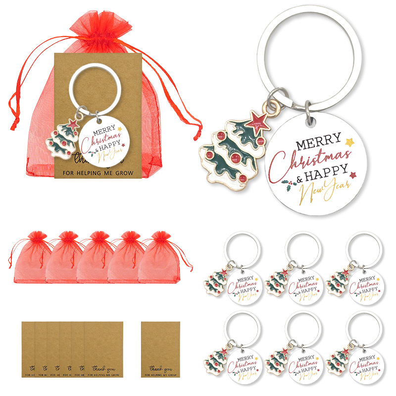 新款跨境圣诞不锈钢钥匙扣 激光刻字平安夜圣诞节英文字母挂件
