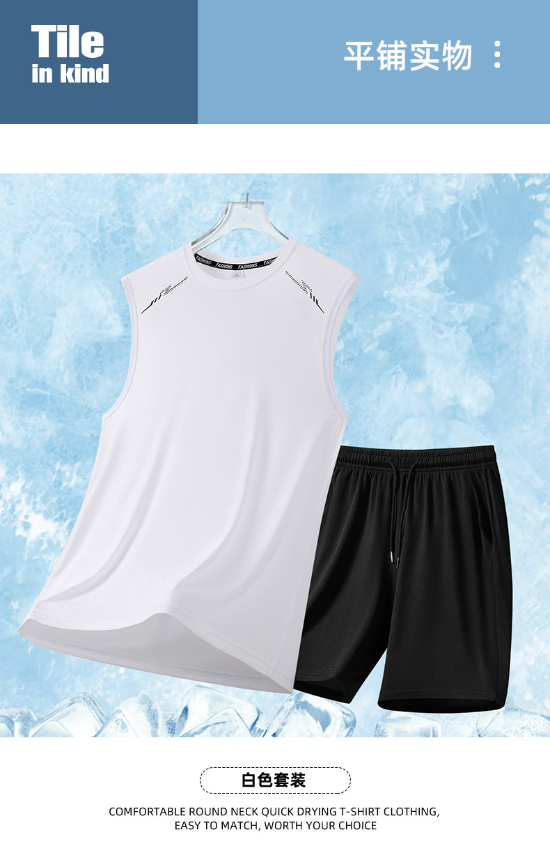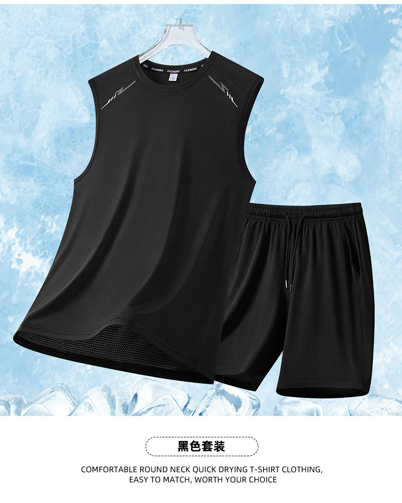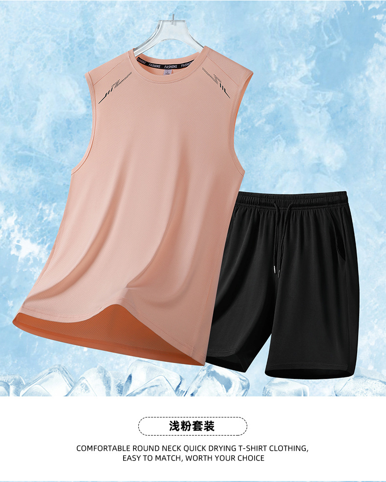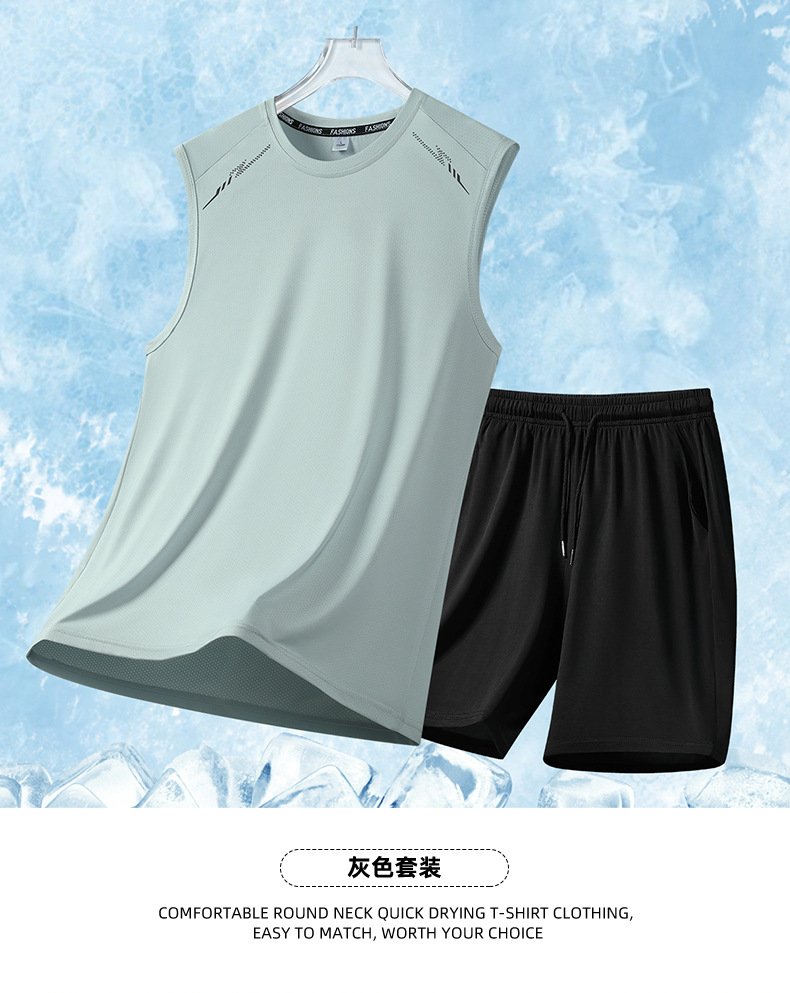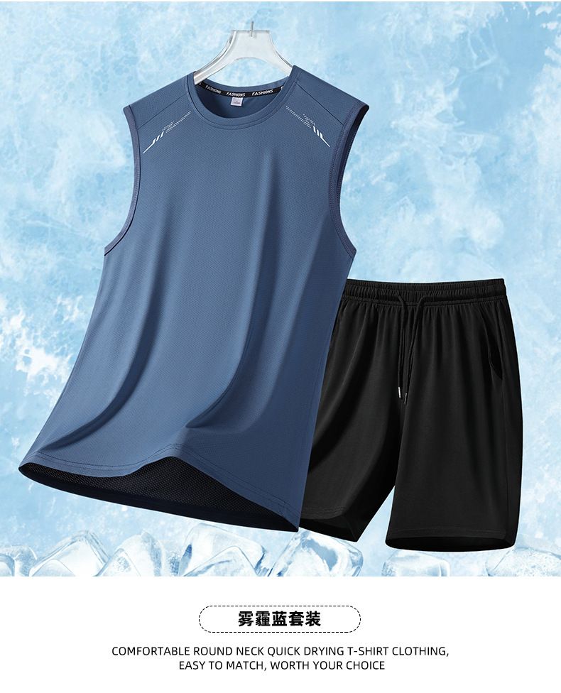 2025 新しい夏のメンズリアルアイスシルク半袖スーツメンズショーツツーピースパンツスポーツカジュアルスーツ