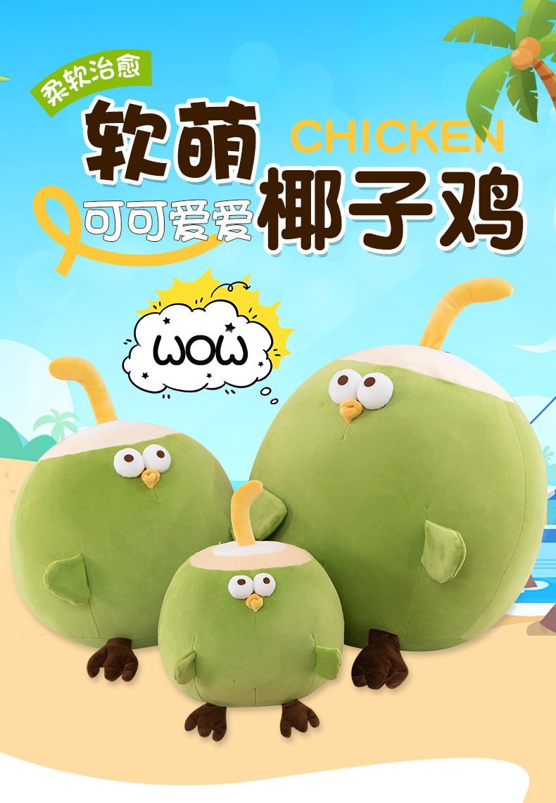 かわいい夏のココナッツのニワトリの公仔は枕を抱いて海南の風情のニワトリのぬいぐるみのぬいぐるみのぬいぐるみの超柔らかいサイズの枕に寄りかかって卸売りします。