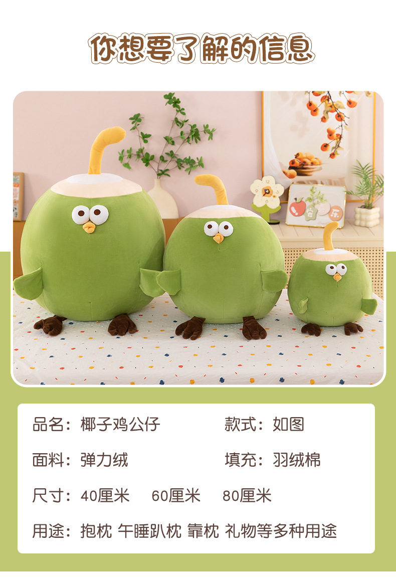 国境を越えた新しいアイデアココナツ鶏ぬいぐるみ人形人形抱き枕クッションかわいい柔らかい萌え人形が女の子にプレゼントされた
