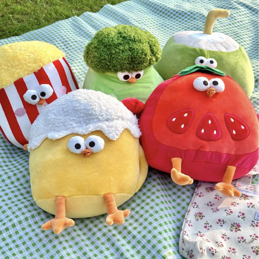 趣味墩墩鸡娃娃公仔汉堡鸡搞怪毛绒玩具水果鸡玩偶抱枕摆件生日礼