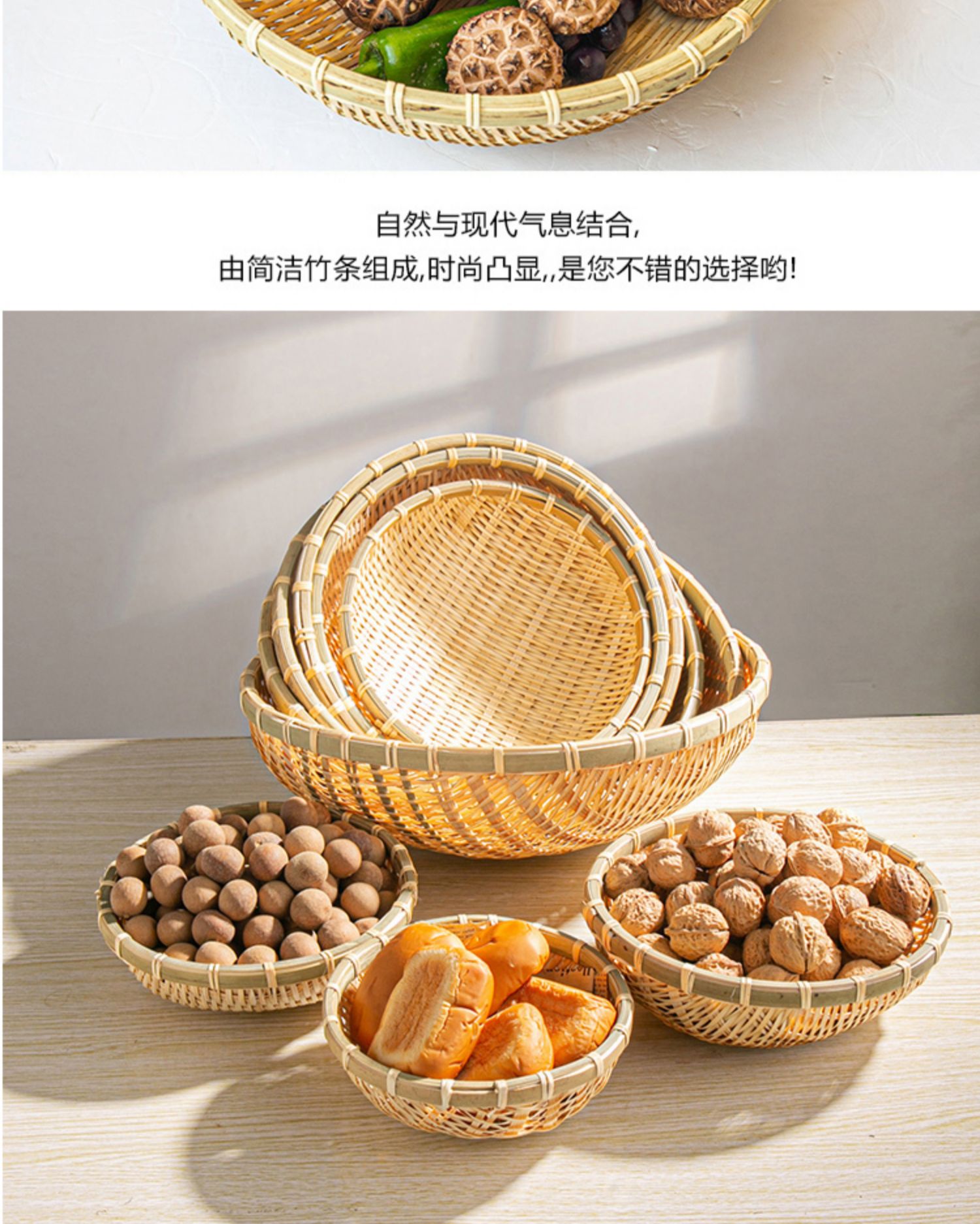 竹編み箕家庭用竹箕竹ふるい農家が米を研いで料理を洗ってご飯を干してバスケットを収納します。