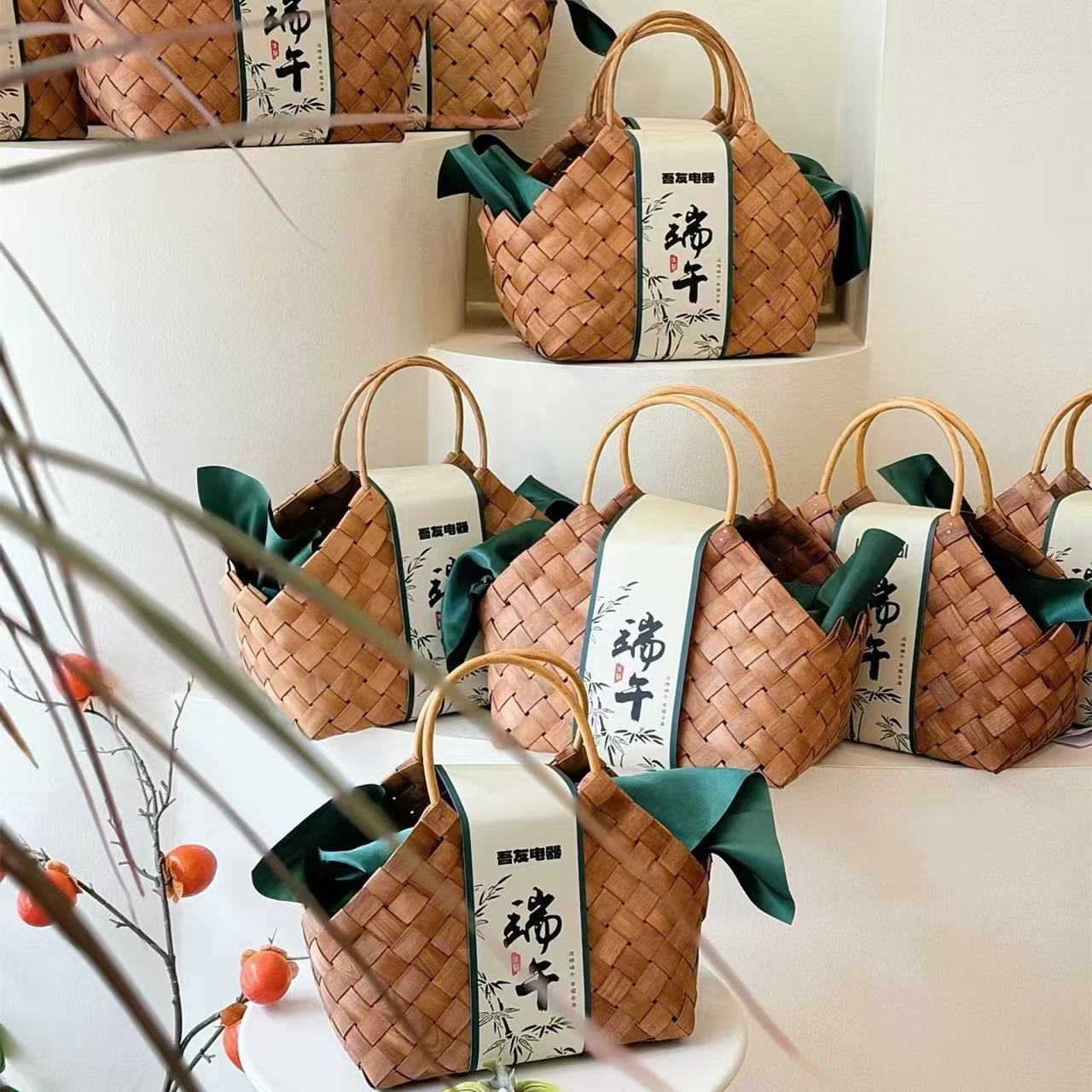 工場直送の手作り竹木編み手提げかご、竹かご包装、ギフトかご、端午節用