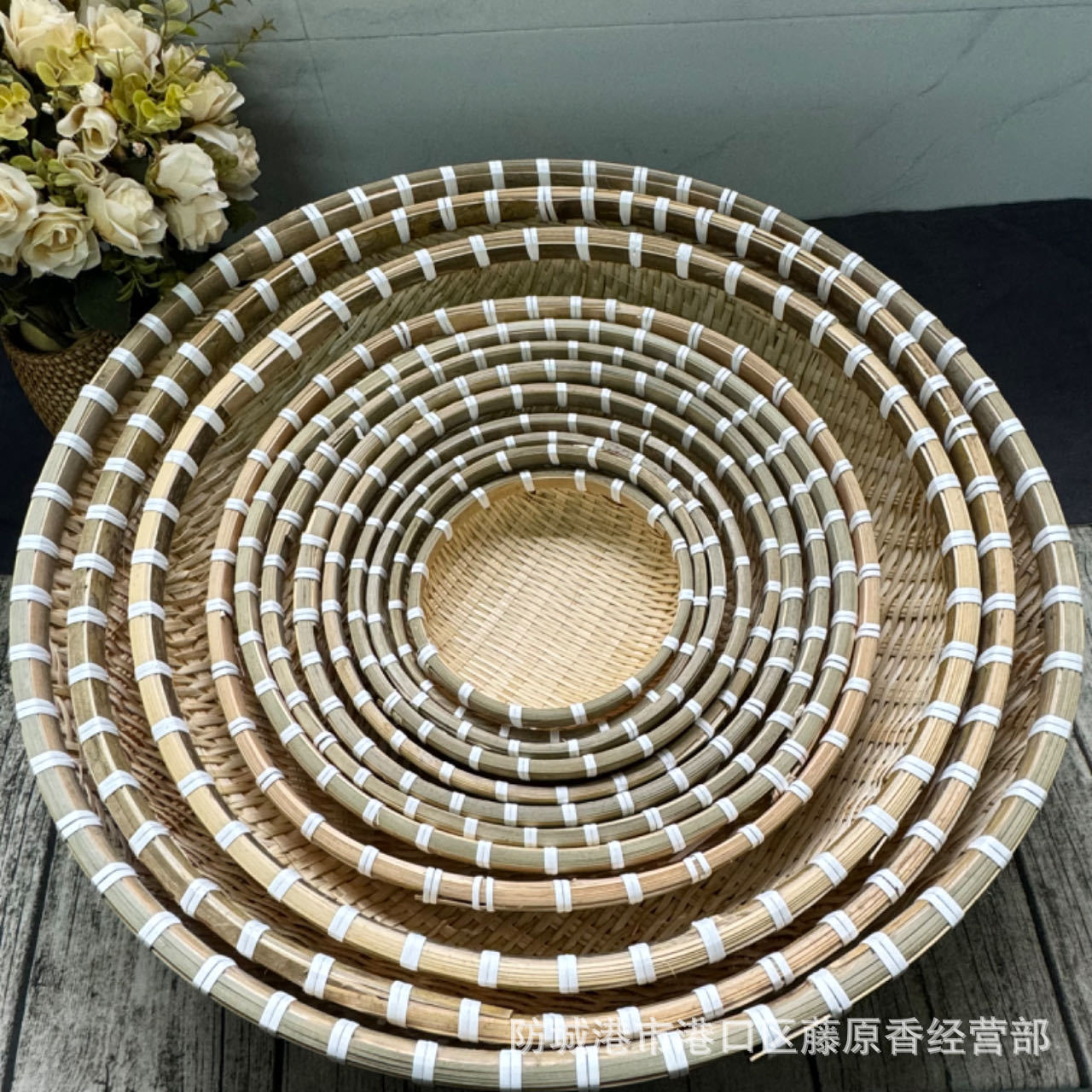 手作り竹編み製品竹バスケット竹ふるい果物バスケット収納バスケット円形竹ちりとり農家用竹バスケットトレイ