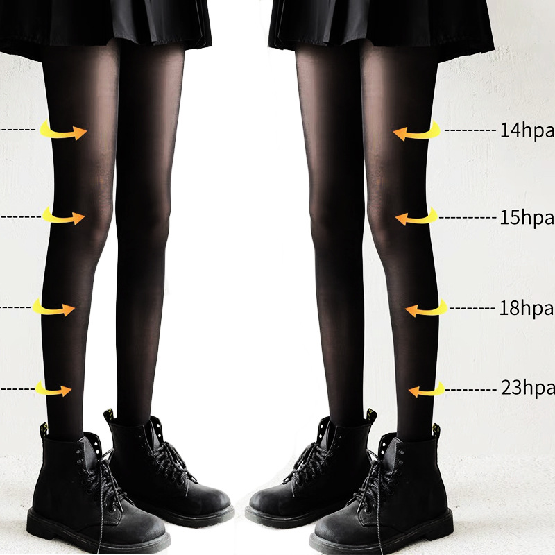 本款采用17.2%莱卡纤维,比一般包芯丝丝袜更加柔软舒适,回弹性耐久性更高。