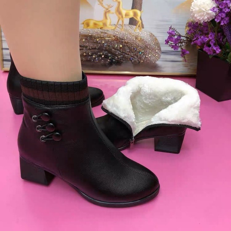 滑り止めと耐摩耗性のファッショナブルな外国貿易レディースブーツ 2025 冬の新しいスタイルの本物のソフトレザースロープソールプラスベルベットのマザーズシューズ