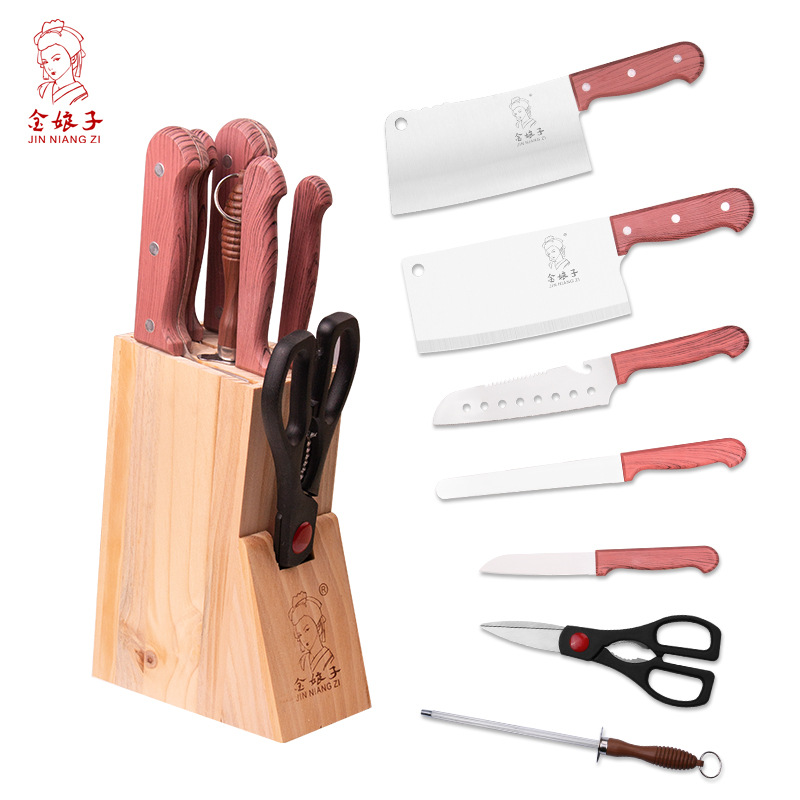 陽江メーカー製木製刀座付き8点セット包丁セット、鋭利で完全なセット、家庭用、キッチン用、収納付き