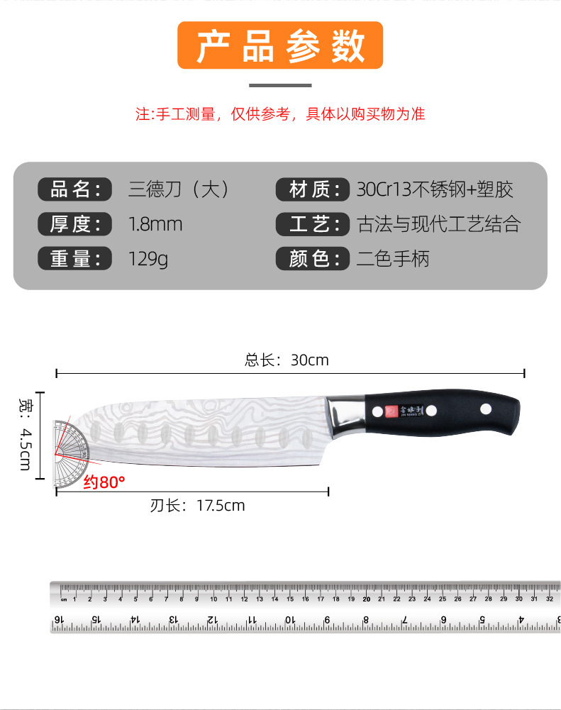 商品番号 豪華なハンドル付き大型三徳ナイフパターンモデル